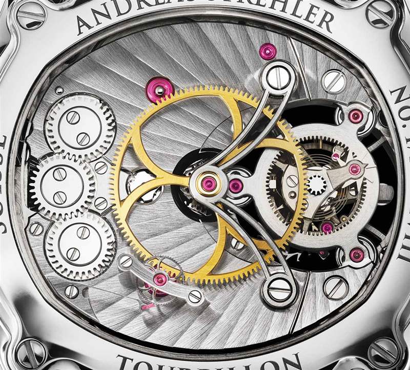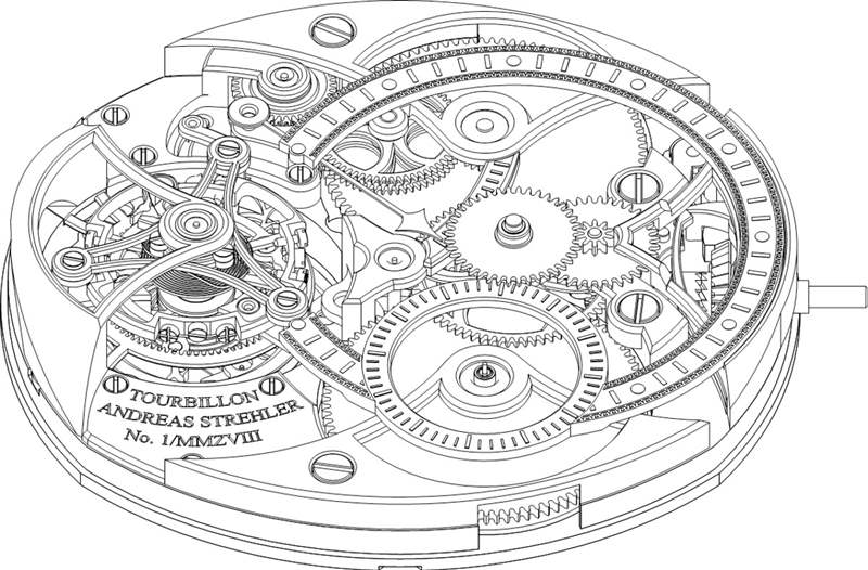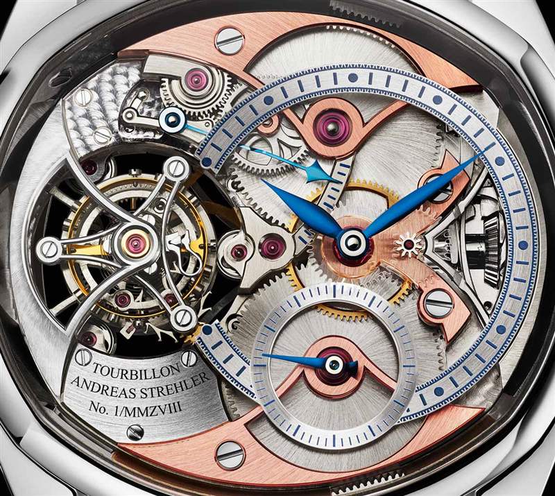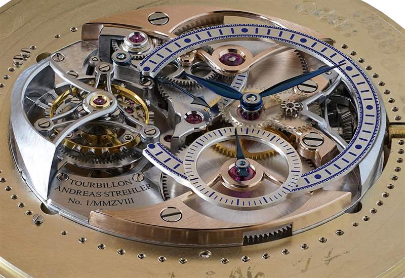 Andreas Strehler 的專長之一是生產非常小的、非常精細的齒輪——特別是錐形齒輪(其中有一些在機芯中)。最明顯的是表冠柄上突出的錐形齒輪,這是上鏈機構的一部分。它是一個非常有效和可靠的系統,可以安全地為機芯上鏈。