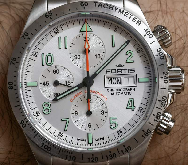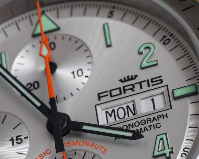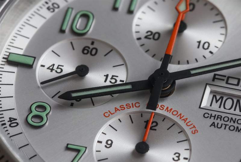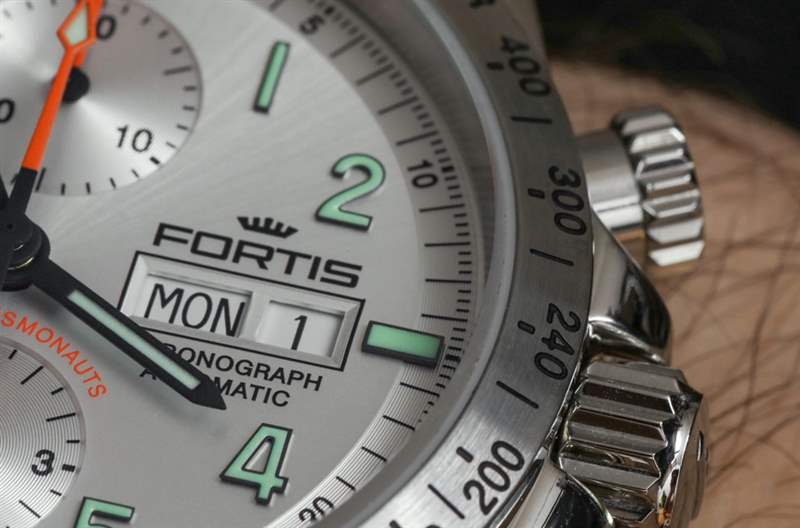 如果對原創性的追求對您來說并不那么重要,而這款手表的設計細節和功能的組合對您很有吸引力,那么您將有很多期待。Fortis 做了正確的事,并使用了涂有發光體的應用時標。這是一個小元素,似乎增加了很多感知價值,因為它升級了 Classic Cosmonauts 手表的整體外觀和感覺。由于子表盤略微凹陷,因此深度更深。再一次,一個扁平的表盤(沒有深度)真的很難讓像這樣的時計看起來一樣漂亮。