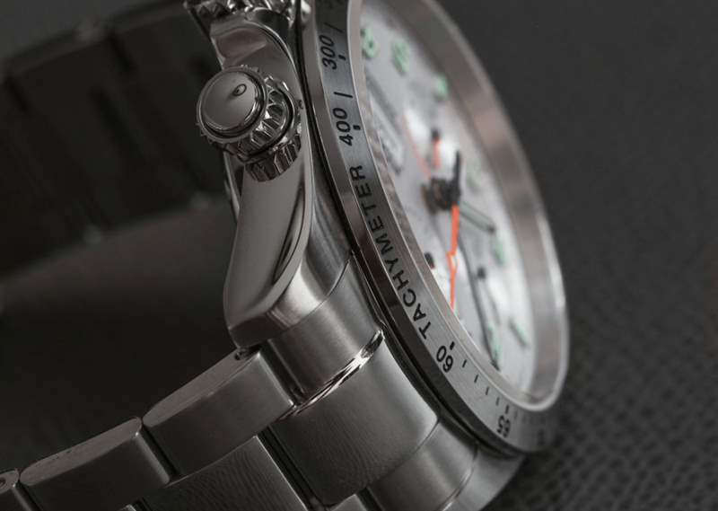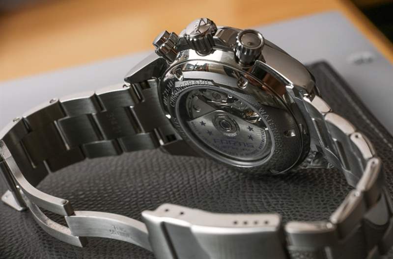 使用 Valjoux 7750 意味著表殼不會那么薄。盡管表耳較短,佩戴舒適度極佳,但 Classic Cosmonaut 的表殼厚度接近 15 毫米。旋入式按鈕和表冠可能有助于整體耐用性以及表殼的 100m 防水性。Fortis 在表盤上使用了一塊很棒的藍寶石水晶,盡管它有點彎曲,但不會受到任何眩光的影響(Fortis 聲稱兩側都有 AR 涂層,這對于這樣的手表是正確的)。表盤的清晰(無眩光)視圖證明了 Fortis Classic Cosmonauts Steel am 時計的工具手表特性。