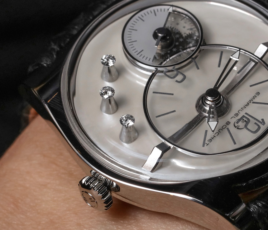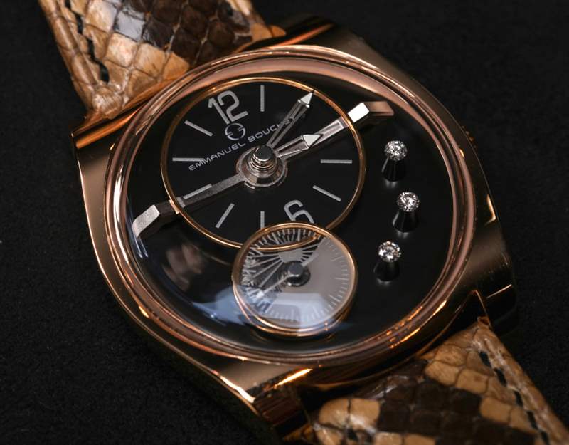 在功能上,EB02 比 Emmanuel Bouchet 更復雜的 Complication One 簡單得多。有人可能會爭辯說,該品牌的一些魅力在一款看起來不像其他任何東西,但功能卻像其他東西一樣的手表中消失了。您可以參考上面關于 Complication One 的文章,看看它是如何工作的。話雖如此,非標準的時間指示方式很難做到正確,并且常常讓佩戴者覺得讀取時間比標準方式更費力。