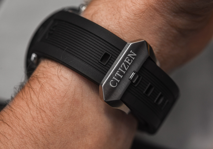 附在鋼制表殼上的是一條黑色聚氨酯表帶,即使它不是風(fēng)格領(lǐng)導(dǎo)者,也很舒適。西鐵城經(jīng)常將表帶與其他很棒的手表搭配,最好用一些可能會(huì)帶來(lái)更好的高端外觀的東西來(lái)代替。我認(rèn)為在黑色皮革飛行員式表帶上,Citizen Promaster Altichron 可能看起來(lái)非常酷。