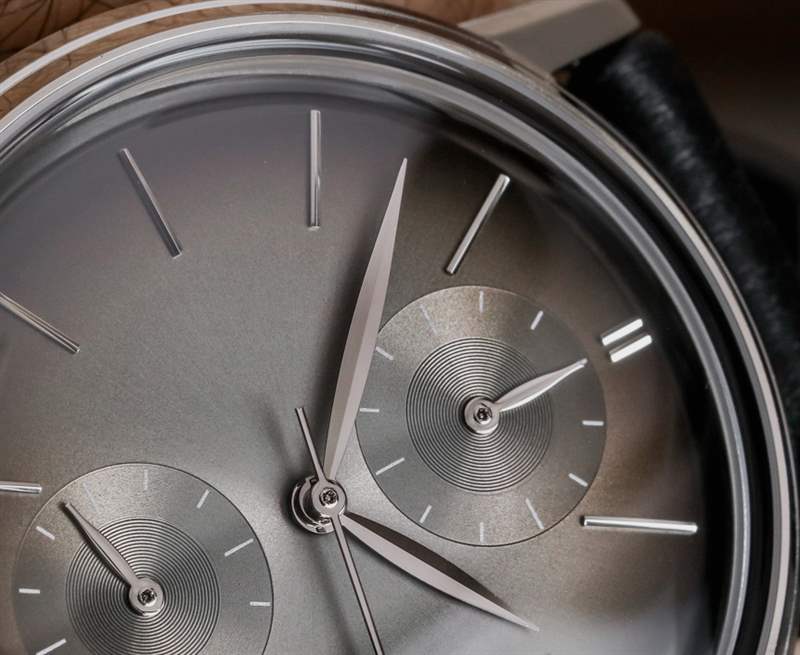 從本質上講,Undone Mystique 是Undone Urban Vintage Chronograph(此處為 aBlogtoWatch 評論),具有不同的表盤。該表盤有四種顏色,通過復雜的多步驟工藝制成,形成優雅的漸變圖案,通常稱為煙熏或煙熏表盤。Undone 毫不避諱地說瑞士品牌H. Moser & Cie 的手表上有類似的表盤。幫助激發了他們的靈感,盡管這種表盤風格可以追溯到幾十年前。H. Moser & Cie. 為今天的時尚手表愛好者斷言此類手表的時尚性是正確的,但顯然不是每個人都有預算花數萬美元購買一只。像這樣的煙熏表盤在 Piaget 的高端瑞士手表以及德國 Glashutte Original 手表上也很受歡迎。日本的精工也生產數量有限的煙熏表盤手表,就價格而言,這可能是 Undone Mystique 時計型號的最佳等價物。廣告訊息廣告信息結束