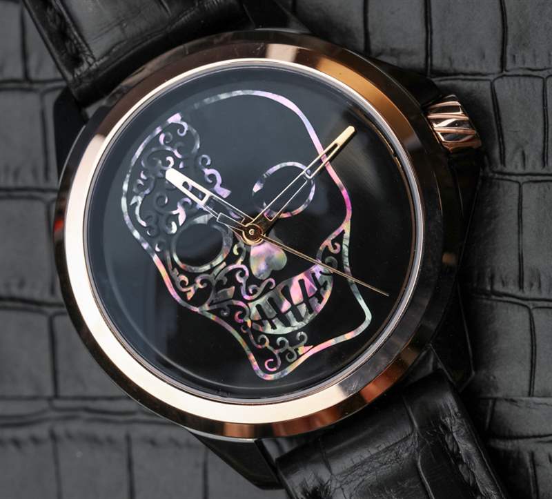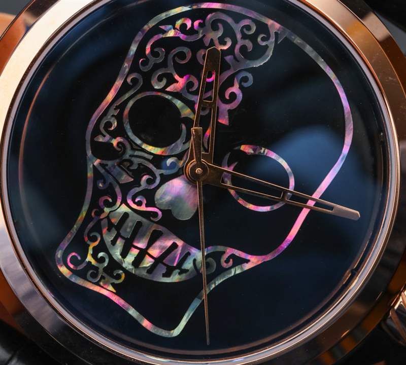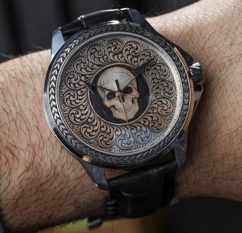 2017 年,槍之子系列中的一大亮點是槍之子 Big Skull。很容易成為我很長時間以來見過的最“金屬”的手表之一,槍之子大骷髏以“槍之子狼人系列”表盤開頭,上面有兩顆純銀子彈,還有這里是真血。47 毫米寬的表殼手鏈是一串銀色雕刻的骷髏頭,表盤上方是一個打開和關(guān)閉的純銀骷髏蓋。很容易成為我在 2017 年巴塞爾鐘表展上戴在手腕上的最狂野的手表,這件獨一無二的手表售價 20,900 瑞士法郎。
