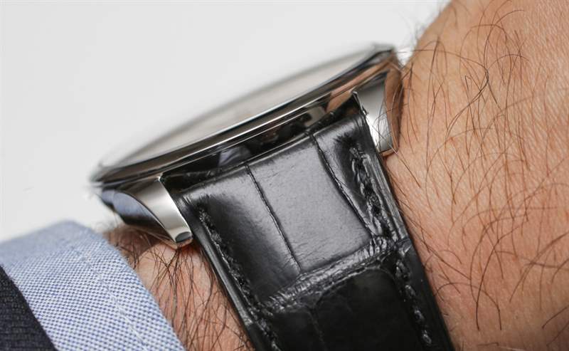 該機芯是內部制造的 Parmigiani PF701,以 3Hz(21,600bph)的頻率運行,動力儲存為 42 小時。它不會在四分之一英里內擊敗保時捷,但它看起來不錯,可以到達終點線。除了在表盤、機芯和表殼上擁有完美的細節之外,我有沒有提到表殼是鈦金屬的?它看起來像鋼,但更輕,在正裝表中不太常見,你會認為表殼是鋼的,因為帕瑪強尼拋光得很好。讓鈦看起來像這樣很難。我什至不確定 Grand Seiko 是否有耐心讓它變得如此流暢(他們更擅長硬線)。