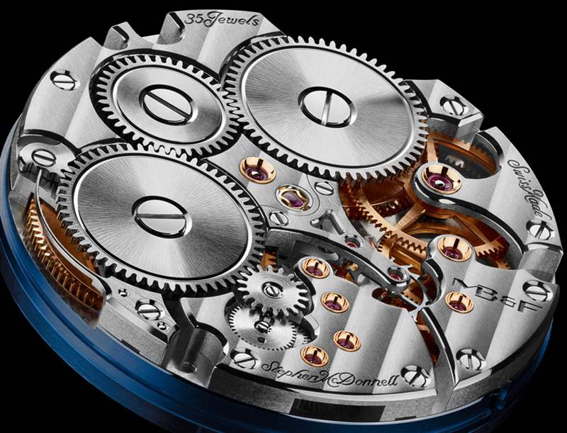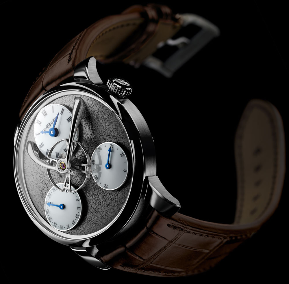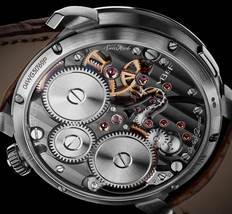 Stephen McDonnell 手動上鏈機芯完成得非常好,再次以每小時 18,000 次的速度運轉,動力儲存為 72 小時。除了大型懸掛式擺輪(由于錨位于手表的另一側,現在看起來更干凈),表盤還有一個用于時間、日期和動力儲存的子表盤指標。從某種意義上說,Legacy Machine Split Escapement 感覺就像是 Legacy Machine 101 的成人版。我很欣賞動力儲存指示器,但當然很容易錯過 LM1 的花哨的“3D”動力儲存指示器。
