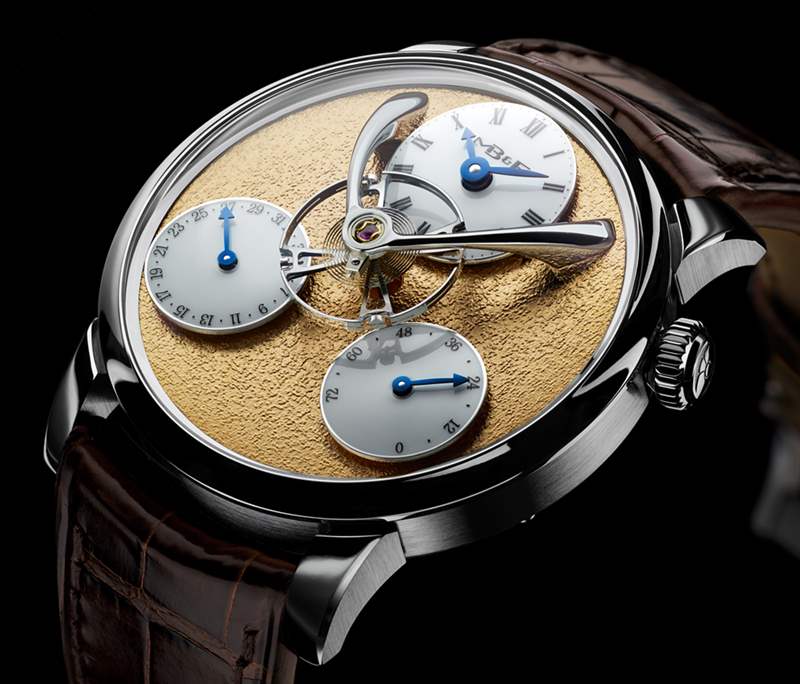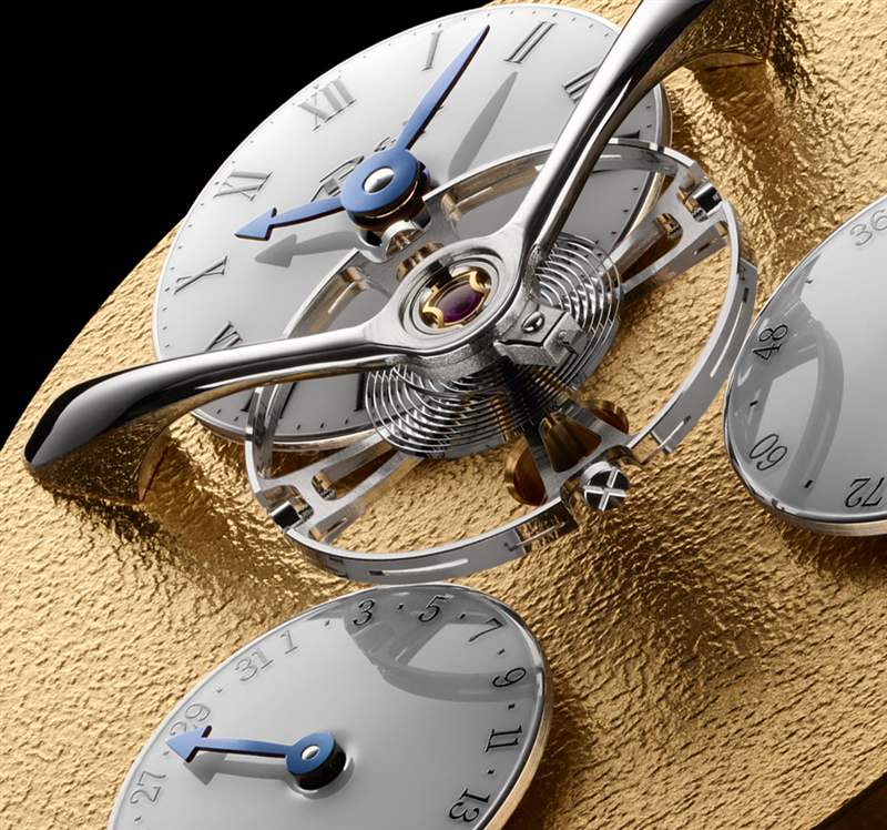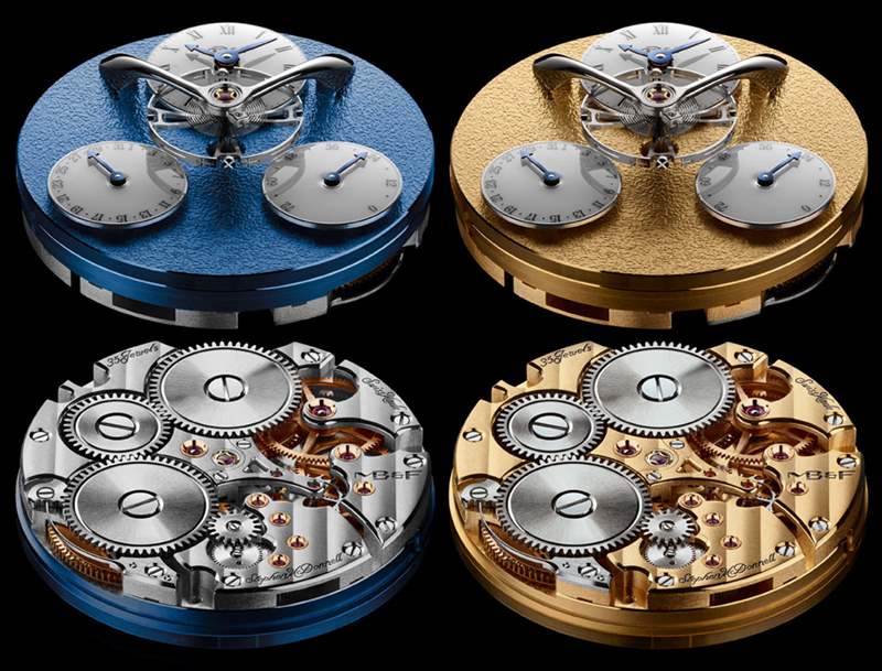 Legacy Machine 分體式擒縱系統受益于對 Legacy Machine 的美學升級,后者最近才推出,并且在 LM1 的生產運行后期。這包括拋光表圈以及平衡輪橋的圓形和拋光設計。MB&F 進一步選擇將他們精美的“磨砂”表盤用于這些首次亮相的 Legacy Machine Split Escapement 手表。這是我們之前在LM101 Frost 中看到的技術(此處為動手)。磨砂面為主表盤上的三個子表盤以及懸掛的 2.5Hz 頻率擺輪機構提供了迷人的背景。