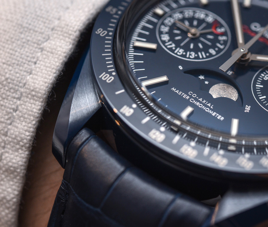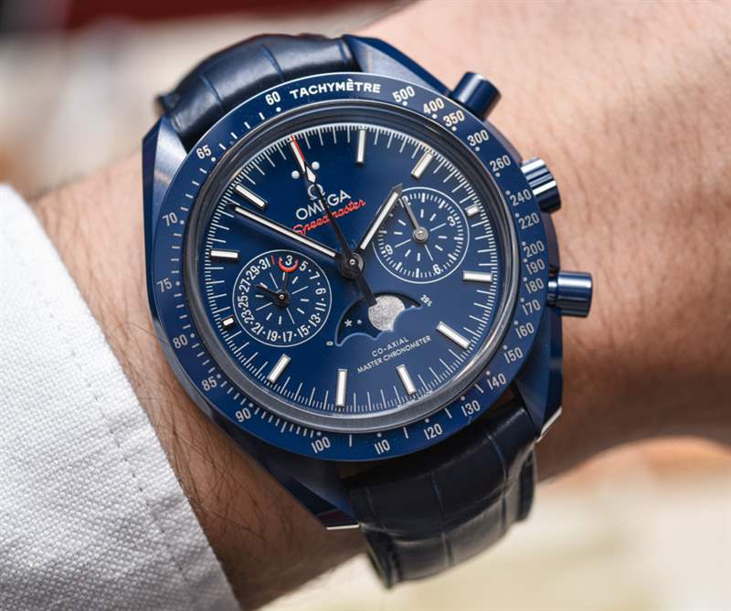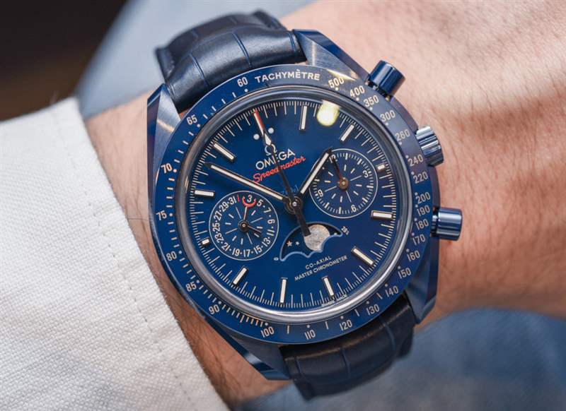 這款新的陶瓷超霸系列不是專注于配備內(nèi)部制造的 9900 機芯的標(biāo)準(zhǔn) Speedmaster Co-Axial Master Chronometer Chronograph,而是基于Omega Speedmaster Co-Axial Chronometer Chronograph Moonphase 和我擁有的內(nèi)部制造的 9904 機芯在這里完成了 aBlogtoWatch 評論。Blue Side Of The Moon 或多或少與我評測過的藍色 Speedmaster Moonphase 手表相同,但帶有優(yōu)雅、豐富的藍色陶瓷表殼。它確實是迄今為止最藍的超霸!這對于色調(diào)的粉絲來說是件好事,在過去的幾年里,從運動到正裝手表以及介于兩者之間的所有東西,它都非常受歡迎。廣告訊息廣告信息結(jié)束