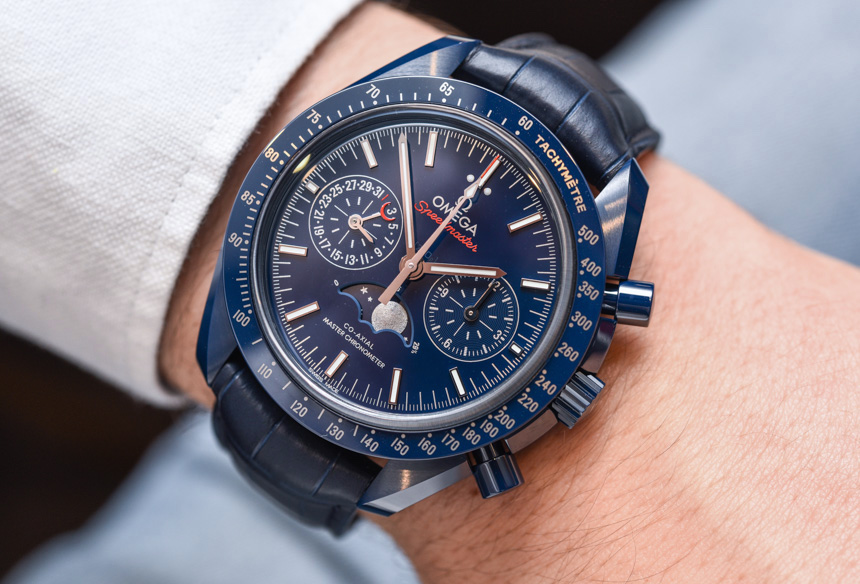 還要記住,藍色表盤和表圈樣式在月球 Speedmaster Moonphase 的藍色側(cè)面與我之前評論并鏈接到上面的鋼殼表盤不同。精鋼款的表盤是拋光的太陽紋金屬藍色,而這款表款的藍色陶瓷表盤則呈現(xiàn)出更啞光的深藍色。我個人認(rèn)為,月之藍方將是大多數(shù)人更喜歡的版本——當(dāng)試圖弄清楚要獲得什么藍色 Speedmaster 時。
