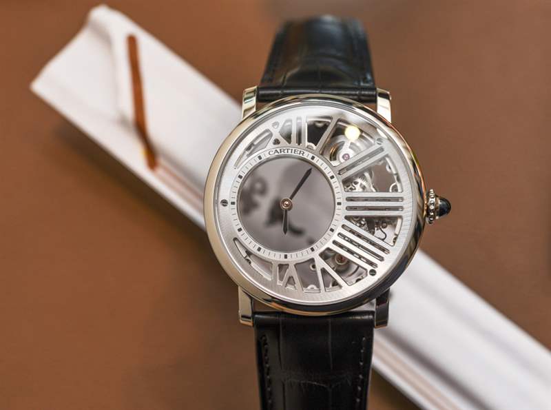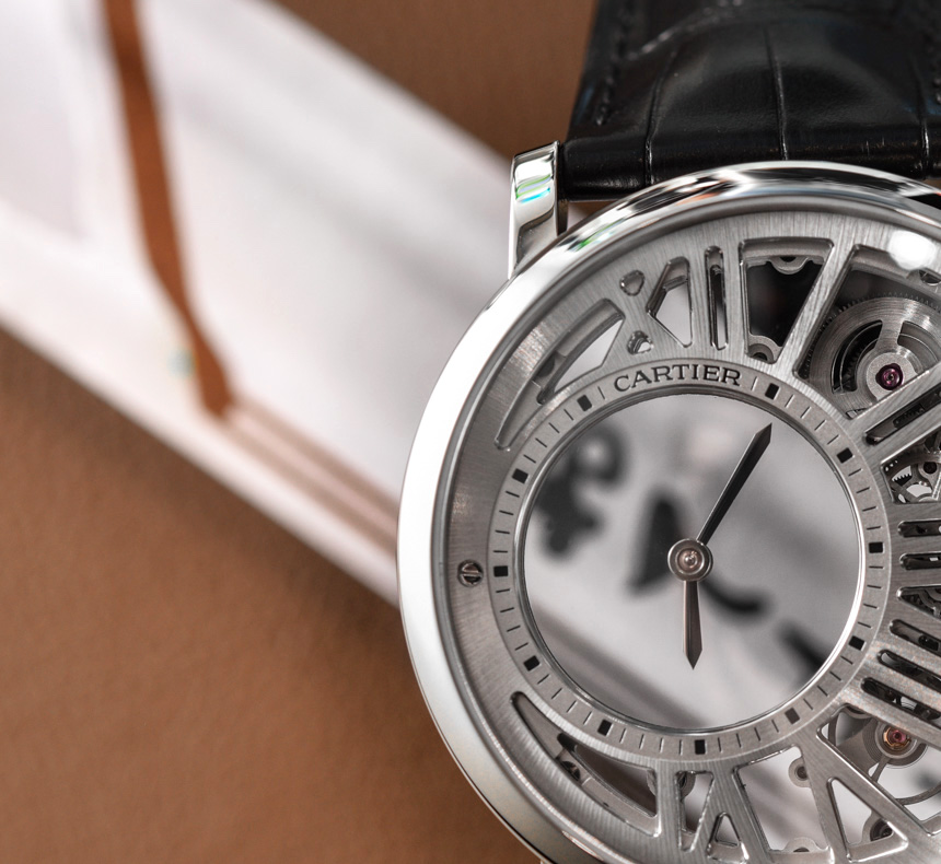 這讓我相信,在大多數(shù)情況下,除了為特殊客戶打造的“獨(dú)一無(wú)二”的作品之外,像 Rotonde de Cartier Mysterious Hour Skeleton 這樣的手表很可能代表了卡地亞為男士制造的頂級(jí)產(chǎn)品。這款手表實(shí)際上是卡地亞現(xiàn)有三款產(chǎn)品的組合,其中包括 Rotonde 風(fēng)格的表殼、時(shí)針和分針位于透明平面上的“神秘”機(jī)芯,以及內(nèi)部的鏤空制造 9981 型機(jī)芯(后來(lái)成為 9983 型機(jī)芯)手動(dòng)上鏈機(jī)芯。