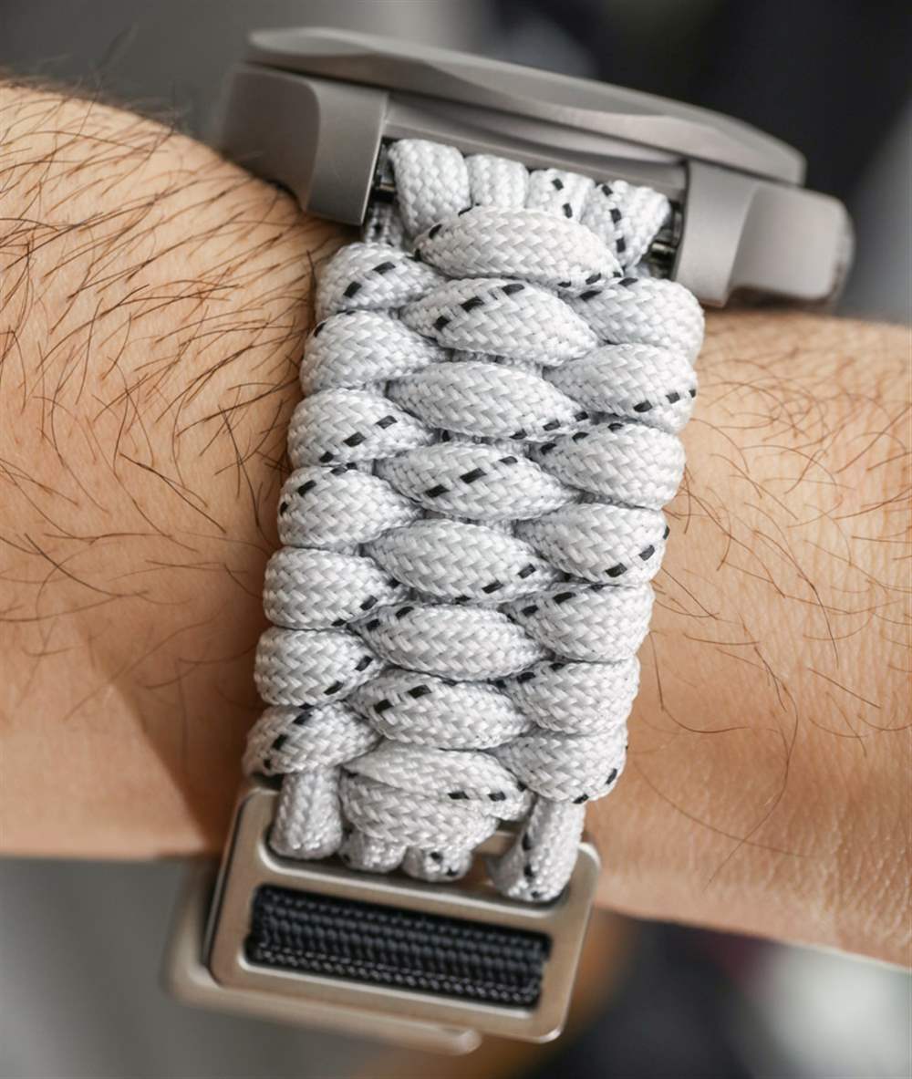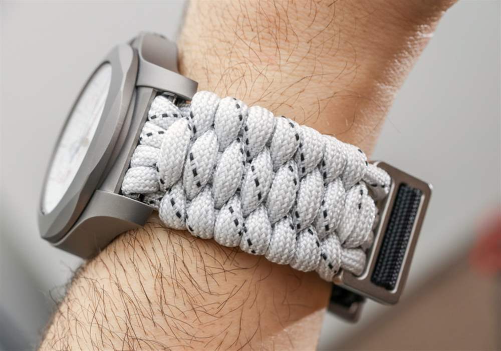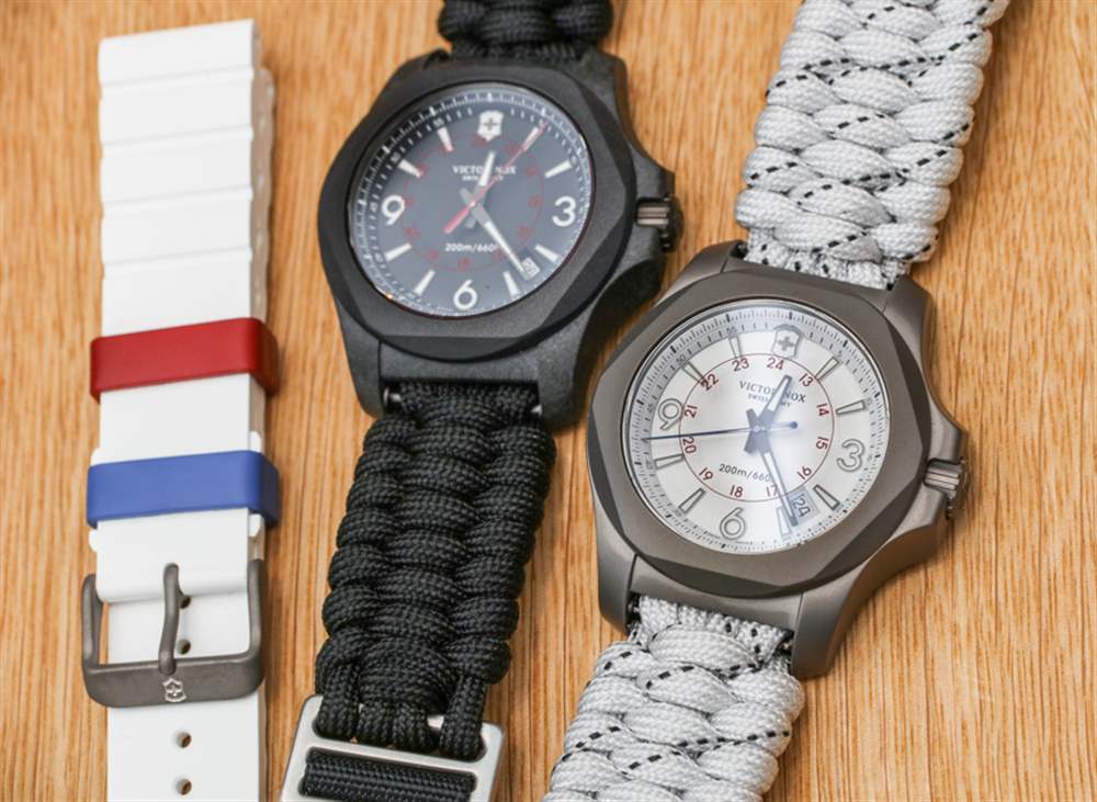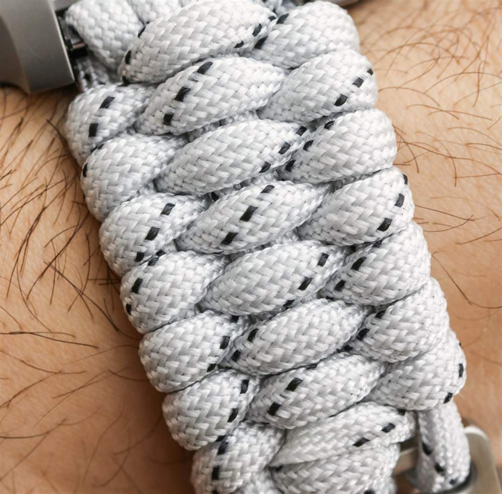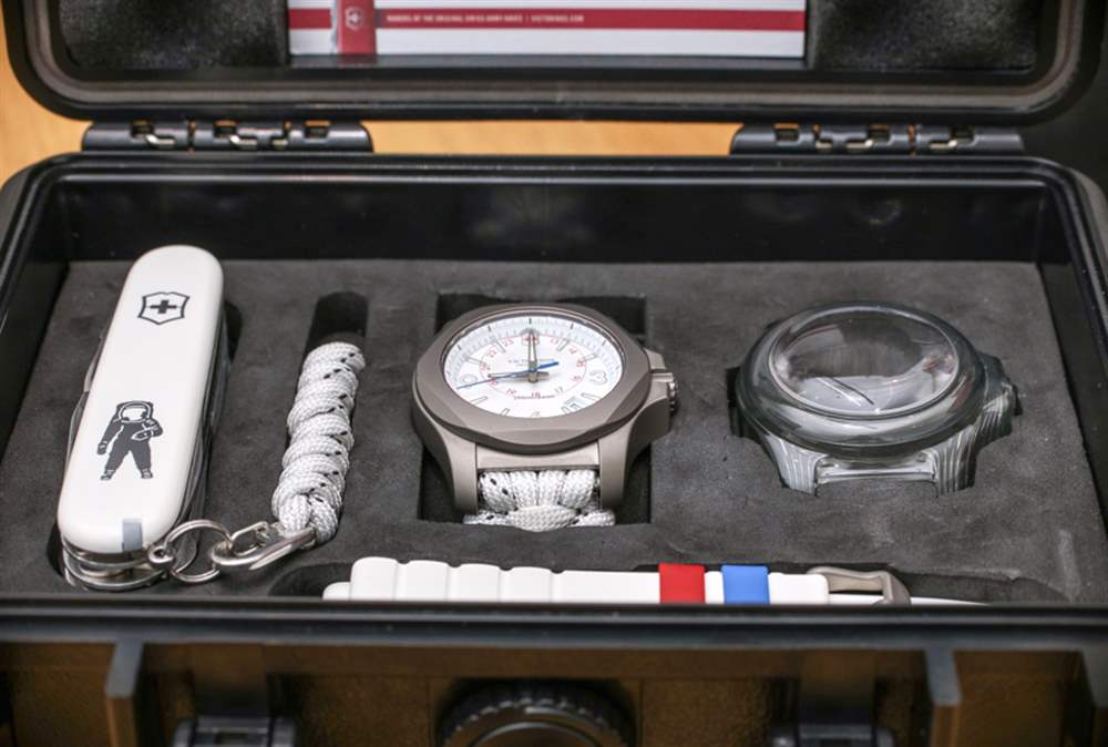 INOX Sky High 提供軍用風格的白色碳纖維表盤,單獨搭配帶斑點的白色傘繩表帶(包含對位芳綸纖維 – 顯然比鋼強 8 倍)。在盒子里,你還會得到一條白色橡膠表帶(帶有藍色和紅色表帶環,有點酷),以及一把帶有傘繩附件的限量版小型瑞士軍刀。根據 Victorinox 的說法,我對這個系列的唯一抱怨是無法真正幫助的?;旧纤c傘繩帶的底面是黑色織物而其余部分是白色的事實有關。這并不可怕,但如果搭配白色會更好。
