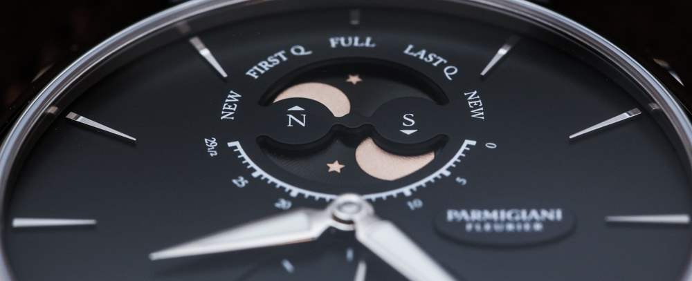 月相指示器有一個“雙窗口”,這意味著月相指示器盤的兩半都是可見的。這看起來很酷,但實用性有限。這個想法是你可以看到月球在地球北半球和南半球的相位。這很整潔,但當然它們是彼此的簡單鏡像。因此,這主要是一種審美選擇,而不是真正實用的選擇。話雖如此,很少有人認為月相指示器窗口是實用的——因為這種并發癥主要是情緒化的(而且很漂亮)。