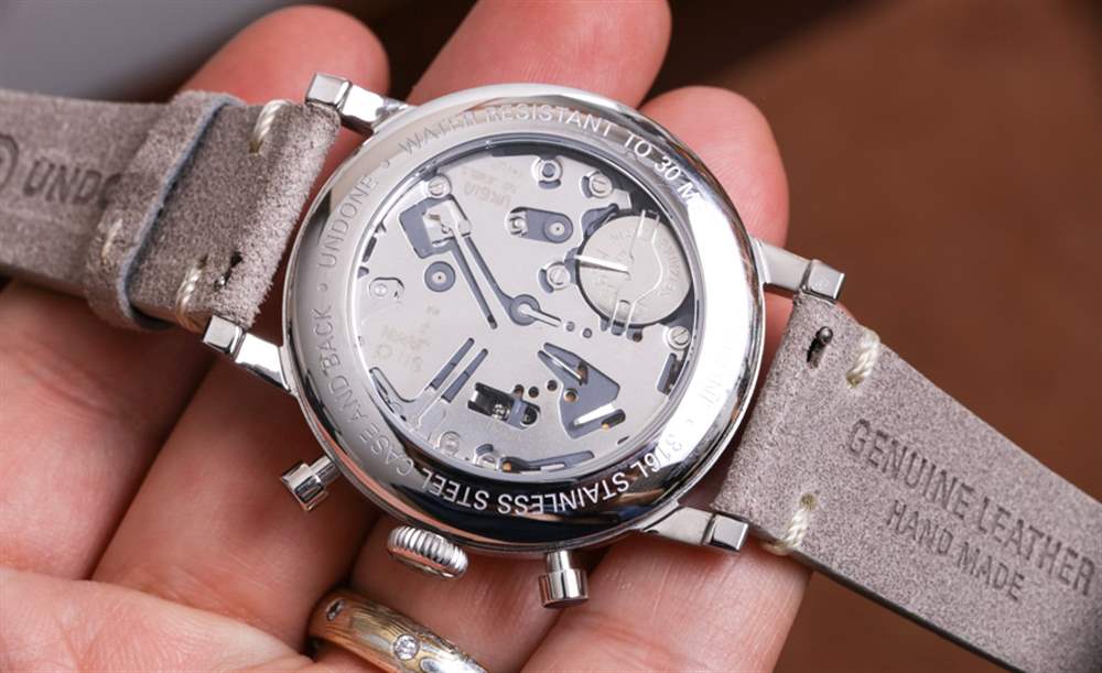 Undone Urban具有所有正確的物質(zhì),顯然是由既了解又欣賞手表的人制造的。我最喜歡的細(xì)節(jié)之一是展示柜背面,尤其是考慮到它是一塊石英表。絕大多數(shù)基于石英機(jī)芯的手表都有堅(jiān)固的底蓋,無法看到機(jī)芯。在這里,Undone 采用了這個(gè)概念,并提供了一款帶展示柜后蓋的石英表——結(jié)果實(shí)際上很酷。