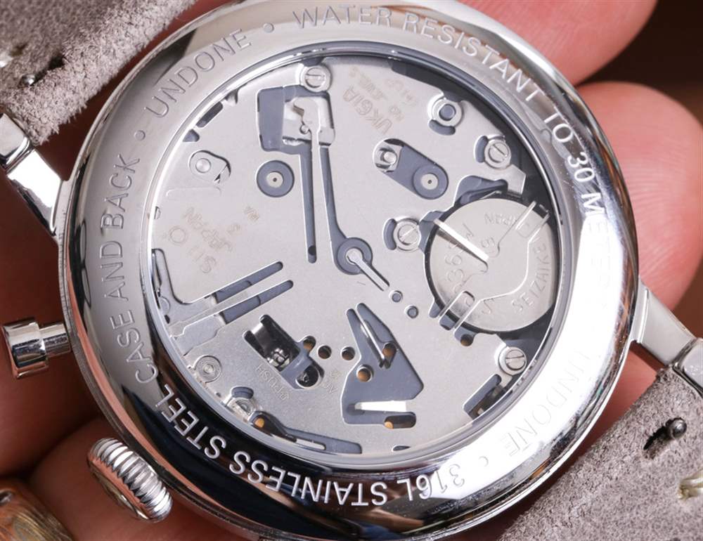 內(nèi)部機(jī)芯是 SII(精工)口徑 VK61(VK61A)石英“混合”計(jì)時(shí)機(jī)芯。有時(shí)您將其視為“機(jī)械石英”或“機(jī)械石英”。這是什么意思?嗯,這基本上意味著手表是電池供電的,并且有一個(gè)石英調(diào)節(jié)器,但它也有移動(dòng)齒輪和類似于純機(jī)械機(jī)芯的部件。這意味著不僅僅是數(shù)字元素。這并沒有真正讓這樣的機(jī)芯更有趣,因?yàn)榇蠖鄶?shù)帶指針的石英機(jī)芯都帶有機(jī)械元素。我只是為那些看到這種語言并覺得這里有什么特別之處的人說這些。您需要知道的是,Undone Urban 計(jì)時(shí)碼表內(nèi)部裝有可靠且體面的日本石英機(jī)芯。
