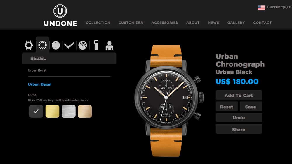 Undone Urban 系列的部分魅力在于,您可以訂購(gòu)帶有現(xiàn)成設(shè)計(jì)的“固定”模型,也可以使用該品牌的在線個(gè)性化工具來配置您喜歡的設(shè)計(jì)。這樣做只會(huì)略微增加價(jià)格,增加 30 美元——這基本上不算什么,因?yàn)樗麄儠?huì)為您單獨(dú)制作。個(gè)性化工具有許多有用的選項(xiàng),從表殼處理到指針、表盤和表帶顏色。還有一個(gè)選項(xiàng)可以讓您的名字出現(xiàn)在表盤或底蓋上——這很酷。這在值得定制的手表中很容易,因?yàn)檫x項(xiàng)很有趣,最終結(jié)果完全物有所值。