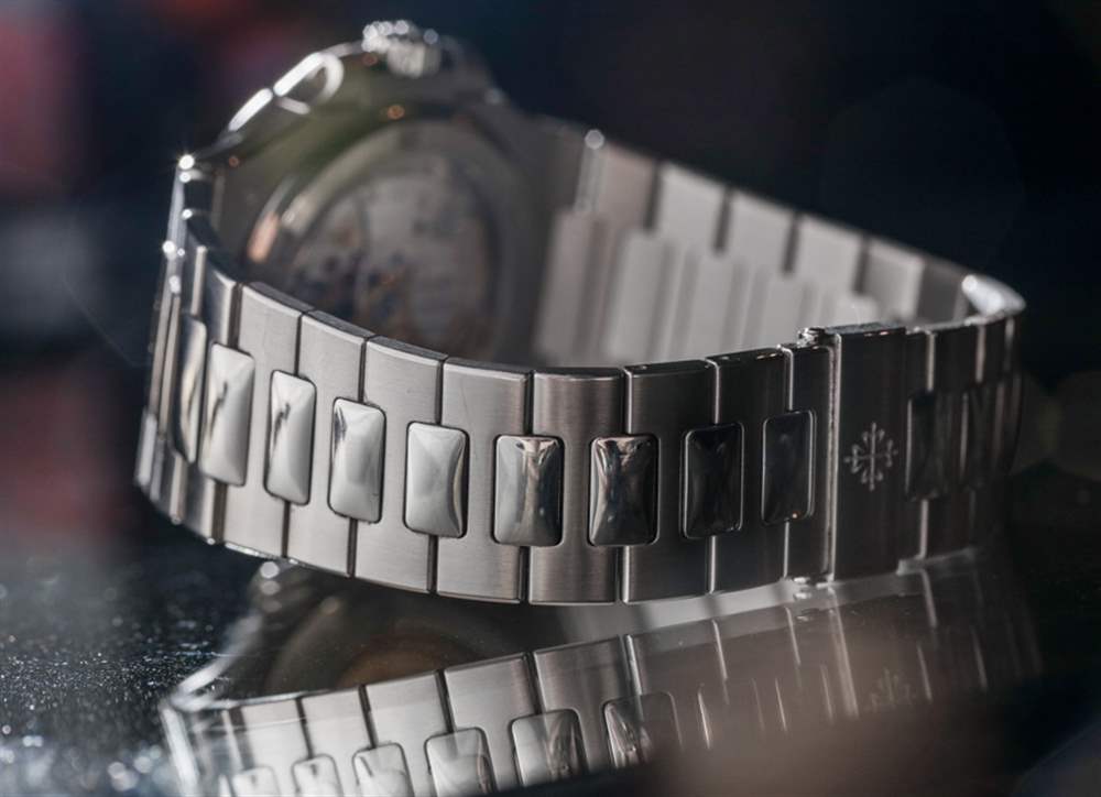 百達翡麗 Nautilus 5711/1P 也比大多數(shù) Nautilus 手表大,寬度為 44.05 毫米。它不會穿得太大,因為這種尺寸的很大一部分歸功于大側面 – 這是原始 Gerald Genta 設計的標志。逐漸變細的鉑金手鏈既貼合手腕又非常舒適。有了這個尺寸和整體可愛的美感,這可能是我穿過的最喜歡的 Nautilus ——但當然,你需要忍受鉑金的價格。在 120 米處,與其他 Nautilus 型號相比,防水性能保持不變。