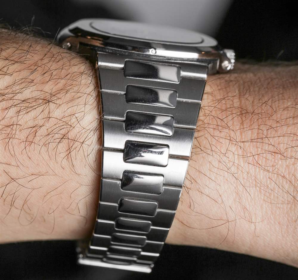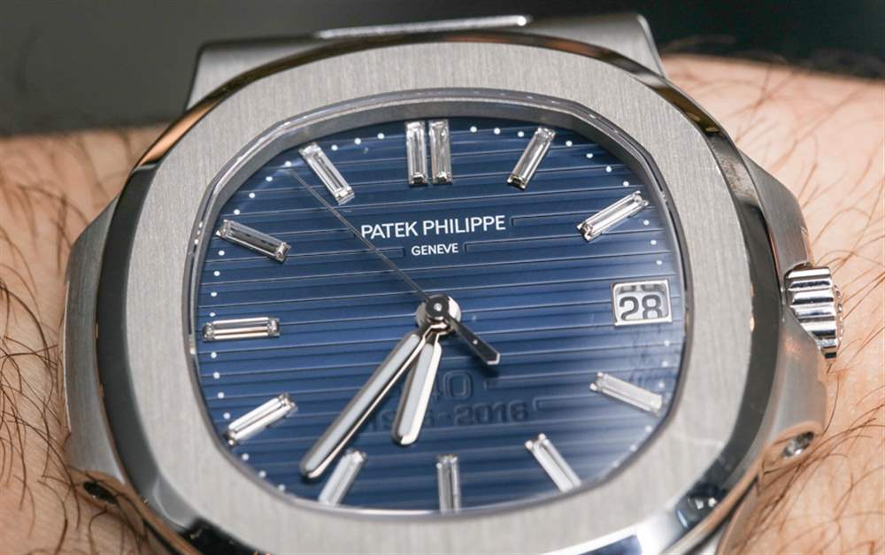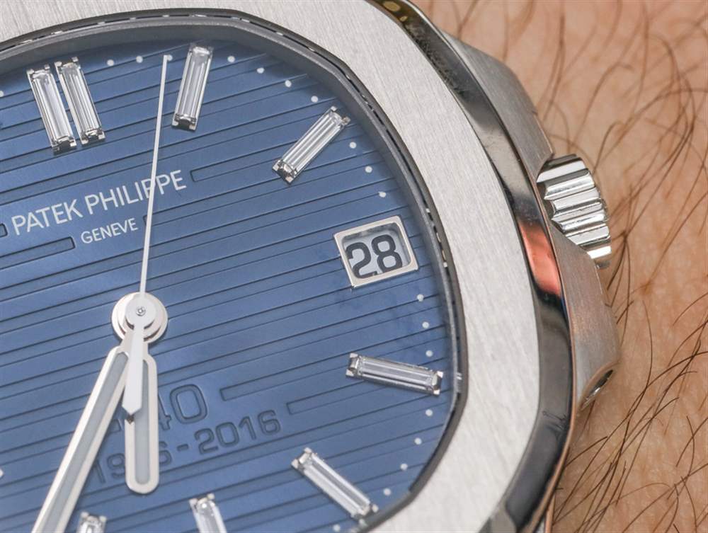 我想談談影響限量版 5711/1P 百達翡麗 Nautilus 推出的一些非常重要的事情。百達翡麗分享的這款手表的圖片使它看起來好像表盤上的“40 1976-2016”文字很大而且很突兀。事實上,在這些圖像中它看起來非常丑陋。然而,在現(xiàn)實中,這個文本非常微妙,在大多數(shù)光照條件下更難看到。大部分情況下,在佩戴百達翡麗鸚鵡螺鉑金 40 周年紀念腕表時,并不能真正看到 40 周年紀念文字。這一點非常重要,因為我認為很多人都認為這是一個非常大的設計錯誤——正如它出現(xiàn)在百達翡麗自己的營銷形象中一樣。教訓 – 再一次 – 是我們應該始終對手表進行最終保留,直到我們親眼看到它。