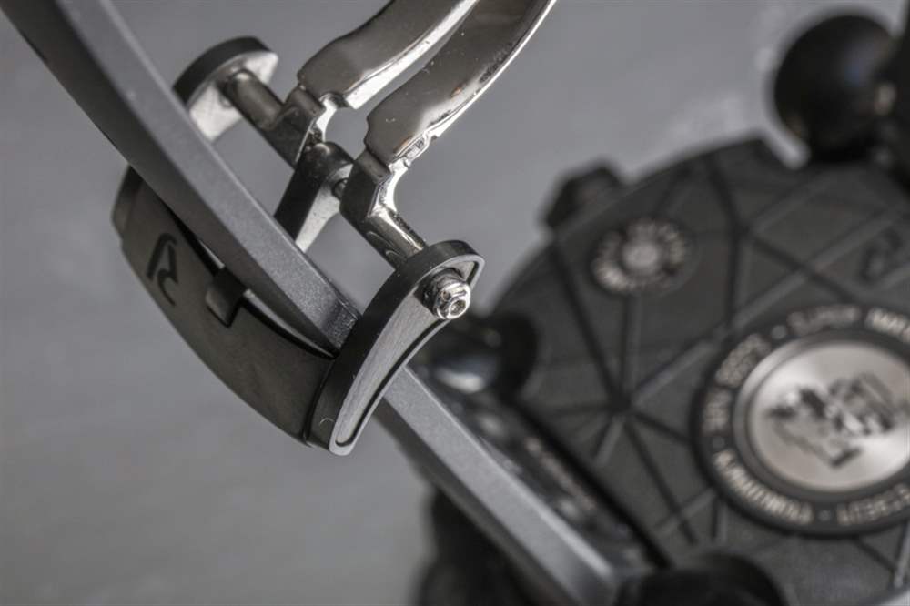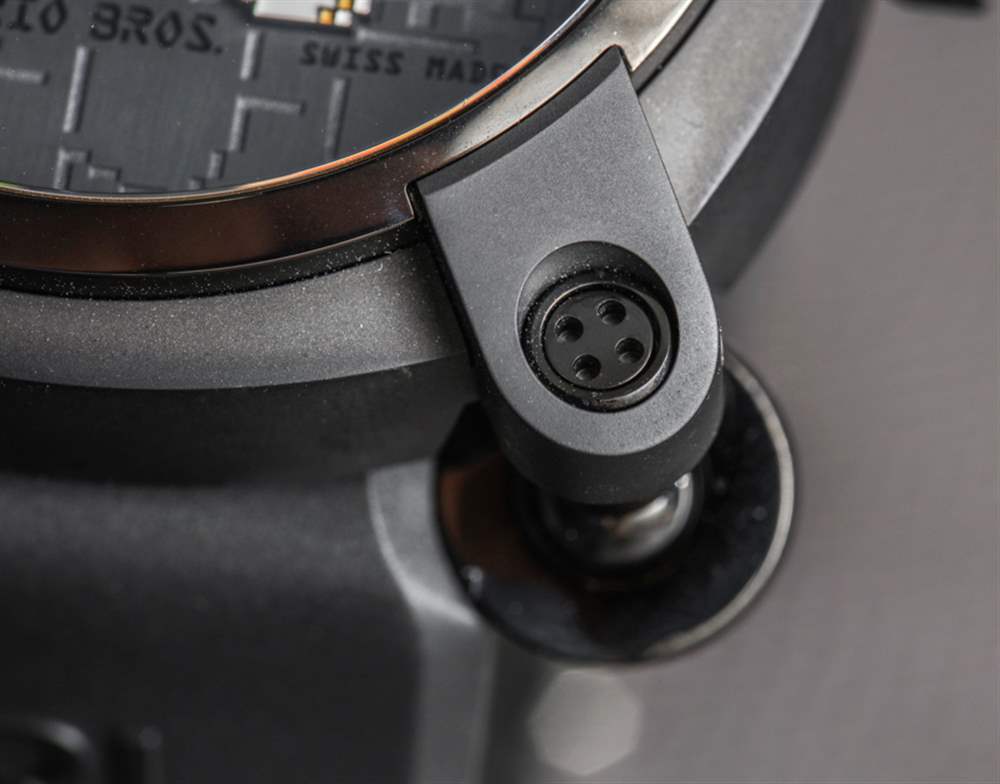 每款以視頻游戲為主題的手表都使用了 Romain Jerome 最初為其 Moon Dust DNA 系列手表開發的 Moon Invader 表殼。這個案例旨在提醒阿波羅時代的帶有腿的登月飛船。這些腿構成了表帶連接到的表殼的凸耳。“落地腳”腿還提供了一些關節,基于這樣的可移動表耳將使原本更大的 46 毫米寬手表更耐磨的想法。我想如果沒有這個功能,這個箱子可能會比現在更不舒服……