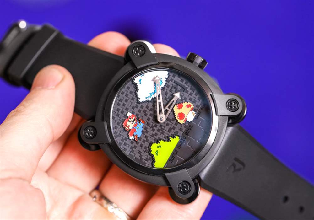 2015 年末,為了 2016 年的產品發布,Romain Jerome 與 Super Mario Bros 一起推出了(截至目前)該品牌最新的電子游戲手表。它于 2015 年首次亮相,以配合1985 年最初發布的任天堂娛樂系統 (NES) 電子游戲《超級馬里奧兄弟》的 30 周年。這可能是第一款電子游戲我曾經玩過,但直到大約兩年后接近 1980 年代后期,我才終于擁有了自己的任天堂娛樂系統視頻游戲機。