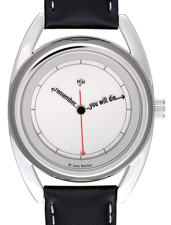 我記得的第一款 Mr. Jones Watch 是他們制造的標志性型號,名為“The Accurate”。手表的指針上寫著“記住你會死”的聲明。僅此款腕表就說明了品牌的個性,以及其產(chǎn)品可能具有的明顯兩極分化效果。Mr. Jones Watches 不是工具表或高級奢侈品,而是古怪的聲明作品,為典型的波普藝術或我們在價格低于 250 美元的“設計手表”中看到的不那么大腦主題注入了更多的智力元素。廣告訊息廣告信息結(jié)束