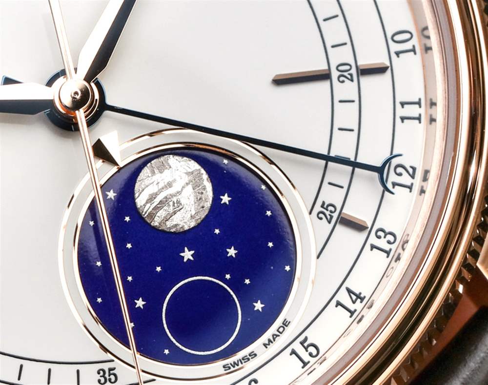 然而,月相復雜功能——尤其是在正裝腕表上——無疑是一種情感復雜的功能,沒有太多的現代實用性。月相指示器旨在跟蹤月盈虧相之間大約 29 天的周期。借助智能手機和其他更有用的天氣和環境狀態指示技術,確實很少有人依靠機械表來了解月相,更不用說有任何理由實際需要知道這些信息了.廣告訊息廣告信息結束