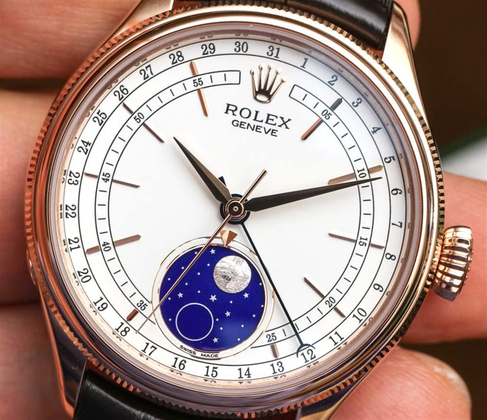 話雖如此,月相指示器是許多精美鐘表中集成的美麗功能,因此,我們在更小眾的奢侈鐘表世界中看到了很多,這些鐘表以情感驅動的美學推銷自己。我必須說,我不會猜到勞力士會對這種復雜功能有多大興趣,勞力士的目標是制造出可以相對大量銷售的高品質手表。我的意思是,在我看來,勞力士切利尼月相是我有生之年見過的第一款絕對小眾的勞力士正裝手表。此外,勞力士似乎是為了吸引其他品牌的注意力而做出的具體嘗試,許多人認為勞力士很久以前就停止關注了。