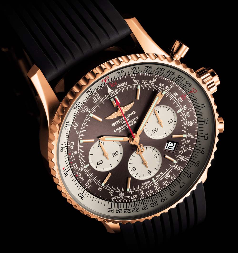 為了推出 B03 機芯,百年靈選擇了 45 毫米寬的航空計時腕表,棕色表盤采用兩種表殼材料:精鋼和 18 克拉紅金作為限量版。棕色表盤(百年靈實際上稱它們為“巴拿馬青銅”)與帶襯墊的棕色鱷魚皮表帶相匹配。雖然百年靈也將在皮革或橡膠表帶上提供 Navitimer Rattrapante。