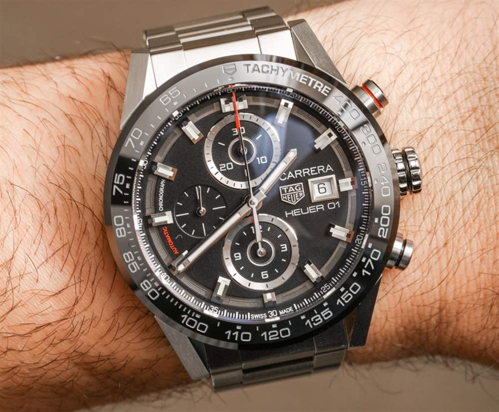 說到泰格豪雅 Carrera Heuer 01,這款特殊的型號是該系列中最保守的型號之一。大多數(shù)泰格豪雅 Carrera Heuer 01 腕表都以鏤空表盤和狂野現(xiàn)代的設計為標志。我認為它們是“嬰兒 Hublot Big Bang”手表——實際上有很多原因。這款特別的泰格豪雅 Carrera Heuer 01 沒有鏤空表盤,在傳統(tǒng)和現(xiàn)代設計之間提供了一種特殊的混合外觀。aBlogtoWatch 之前在此處對更現(xiàn)代的 TAG Heuer Carrera Heuer 01 腕表進行了全面評測。