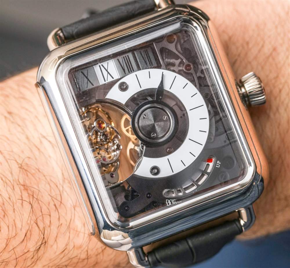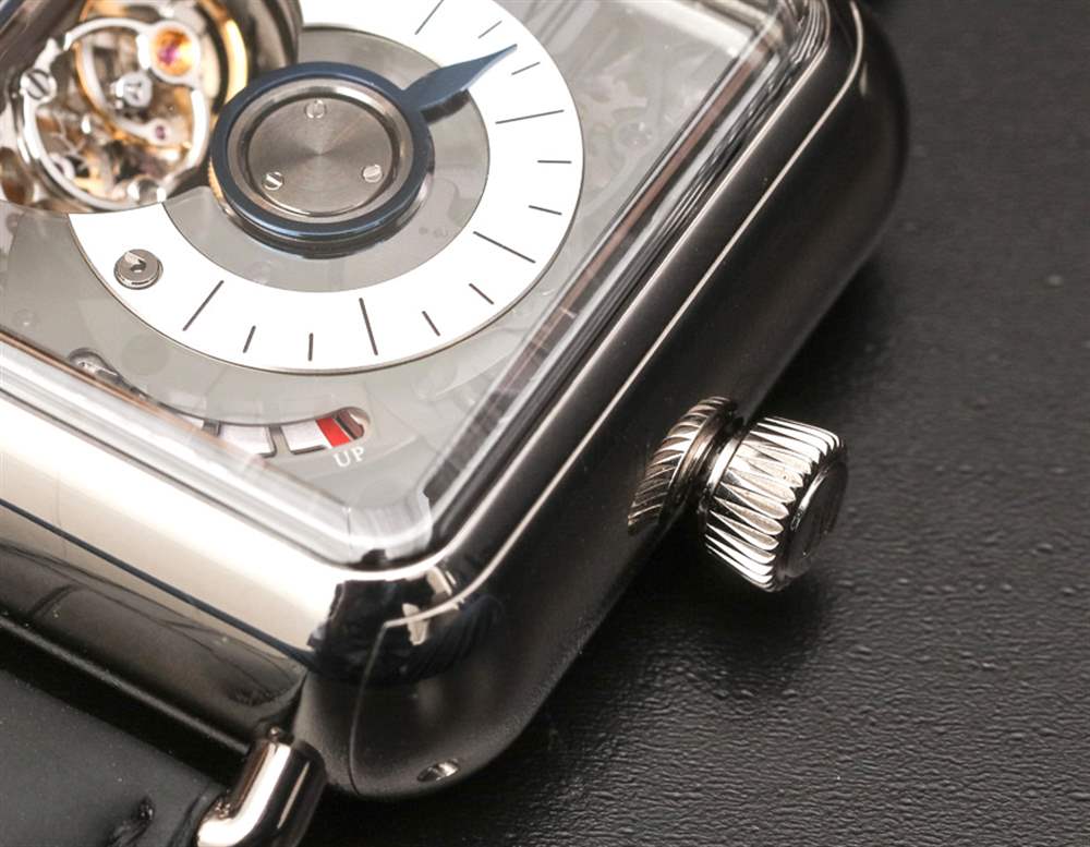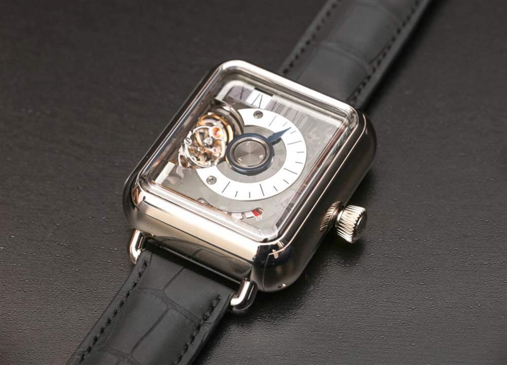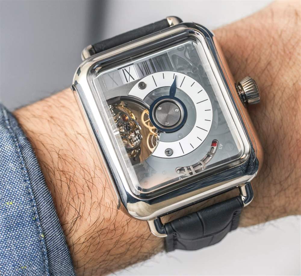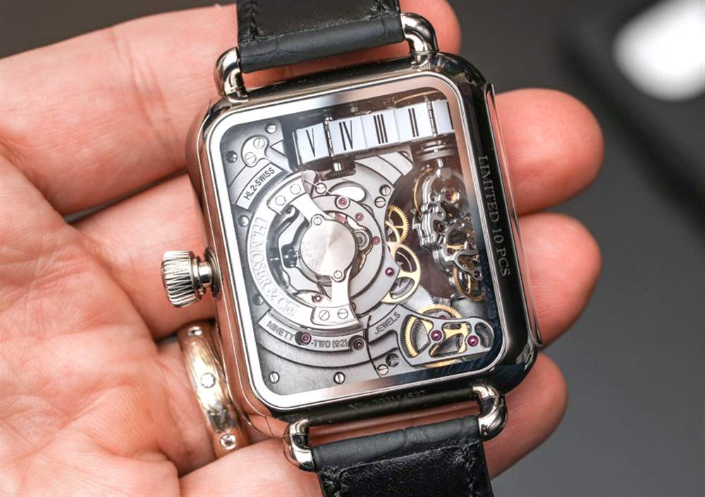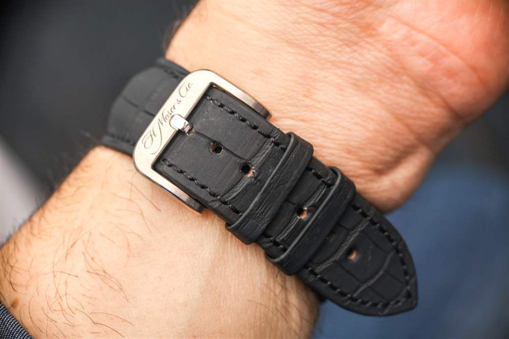 所以,雖然我個(gè)人不是 H. Moser & Cie 的 Apple Watch 復(fù)制品的粉絲,但我確實(shí)喜歡這種表殼概念如何很好地容納 HL2.0 機(jī)芯。表殼的柔軟邊緣有助于減少其視覺(jué)質(zhì)量,側(cè)面藍(lán)寶石水晶窗口可以很好地觀察機(jī)芯。任何熟悉 Apple Watch 比例的人都會(huì)認(rèn)出類(lèi)似的設(shè)計(jì)線索、表耳和整體形狀,但這里有足夠的不同之處,這是對(duì) H. Moser & Cie 正在尋找的 Apple Watch 更“合適”的答案為了。易讀性也不是那么糟糕,而你在營(yíng)銷(xiāo)圖片中看不到的,當(dāng)你看到手表的人時(shí),你可以看到機(jī)芯上方的煙熏藍(lán)寶石水晶元素如何為機(jī)芯上的機(jī)制提供一個(gè)很好的視角里面,