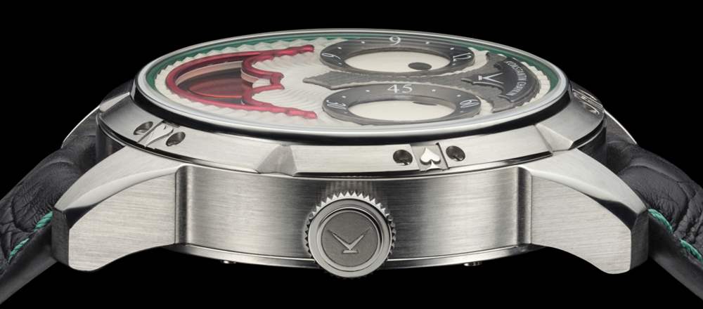 綠色、紫色和紅色等強調色,以及帶有拉長紅色微笑的表盤卡通面貌,是蝙蝠俠世界小丑最喜歡的。撲克牌符號裝飾表圈周圍的點,整個手表似乎以騙子的想法為主題(無論他們是頑皮的還是仁慈的)。像這樣的概念可以很快從有吸引力變成丑陋,從有品位到俗氣甚至更快。我想說 Konstantin Chaykin 巧妙地融合了美學和技術元素,使 Joker 手表保持在“品味圍欄”的正確一側。廣告訊息廣告信息結束