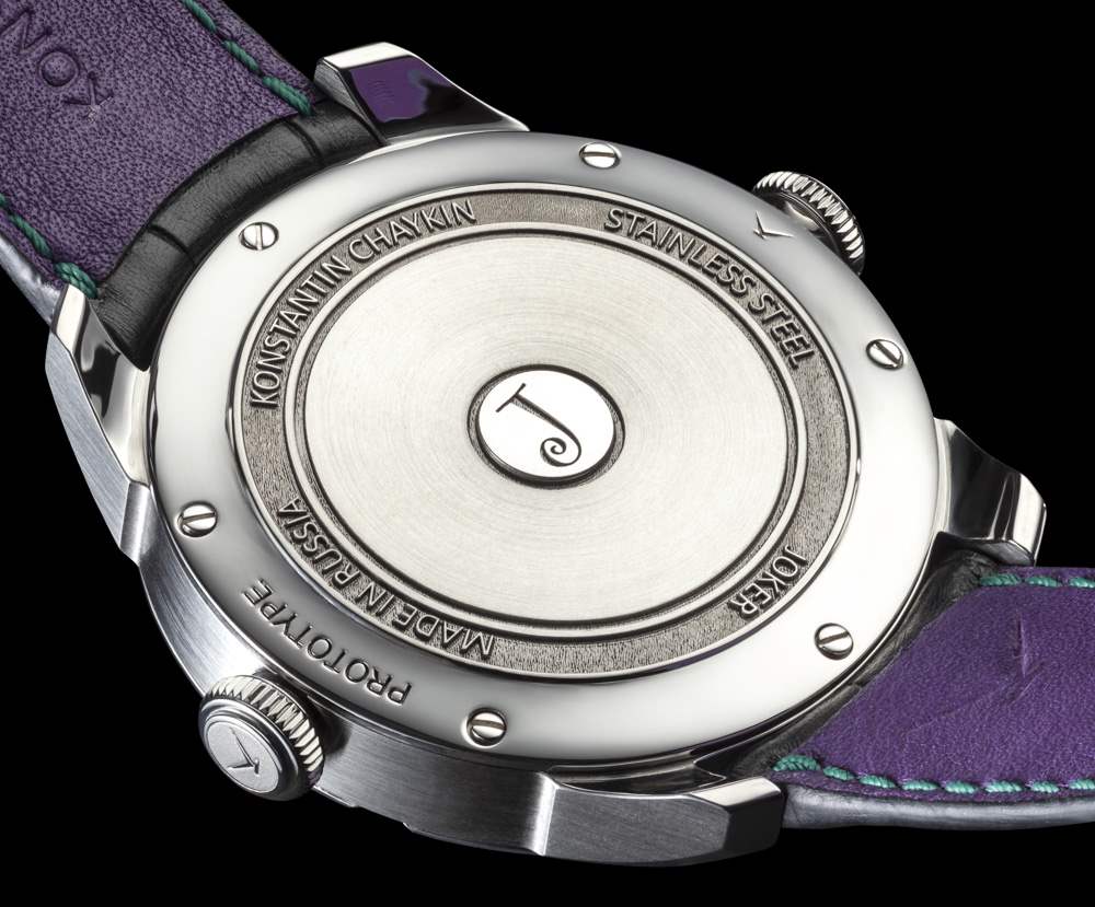 Joker 手表內部是一個名為 calibre K07-0 的機芯,它以基本的瑞士 ETA 2824-2 自動機芯開始,然后由 Konstantin Chaykin 內部修改。機芯動力十足,因此動力儲備降至38小時,仍以4Hz運行。從功能上講,您有兩個小時和分鐘的圓盤,指針代表眼球。它們在兩個“眼睛”中的每一個中圍繞專用的小時或分鐘軌道移動。這允許一系列不斷變化的“表達式”。