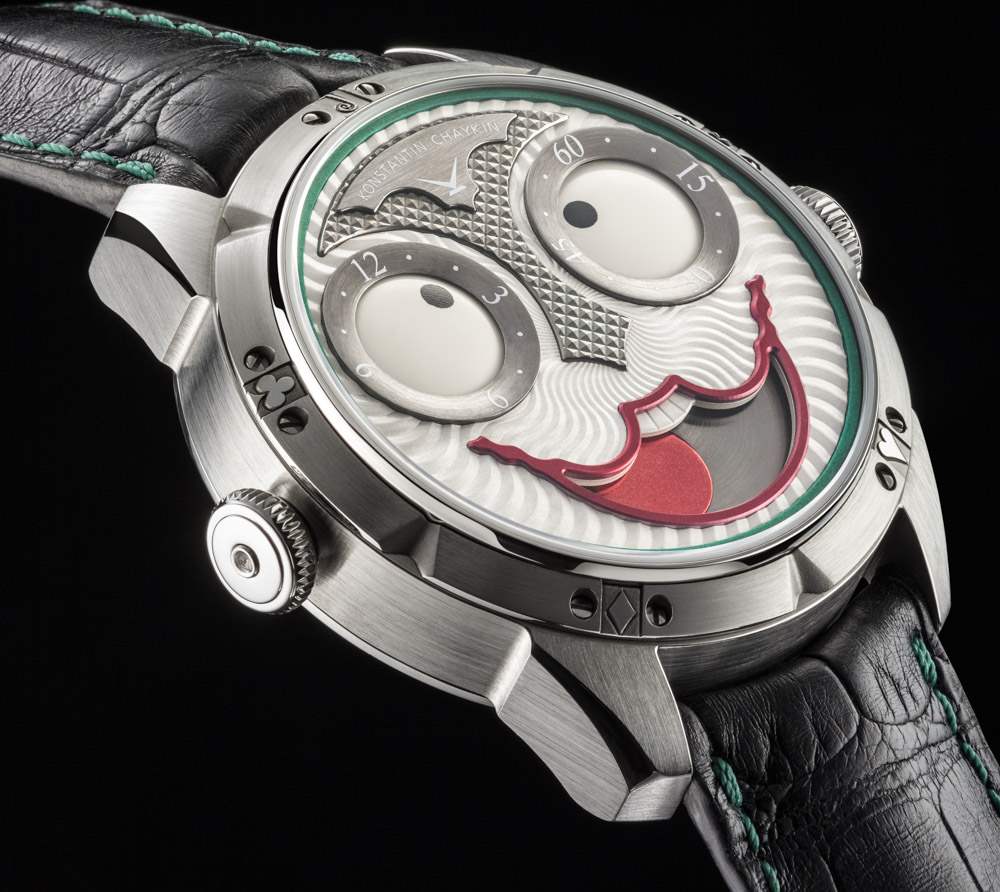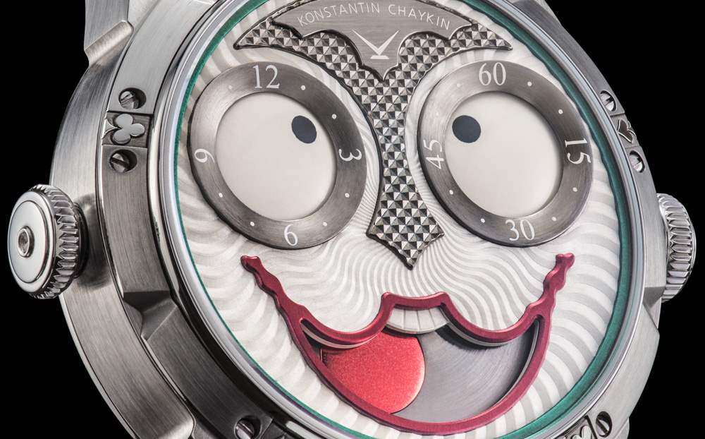 俄羅斯鐘表制造商康斯坦丁·柴金 (?Konstantin Chaykin?) 說話輕聲細語,非常聰明,他的作品總是能引起我的興趣。2017 年,他最新的手表是限量版,全是關于奇思妙想(和蝙蝠俠惡棍)的。Konstantin Chaykin Joker 是對著名的同名蝙蝠俠惡棍的一個典型且相對友好的致敬。這款腕表的意義不僅在于提醒腕表收藏家小丑角色,還在于使用他的主題來展示一款具有約 20,000 種不同“面部表情”的“面部”的時計。