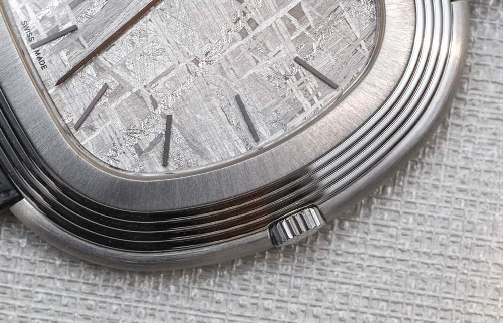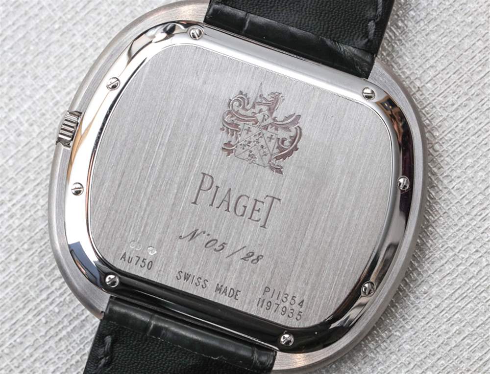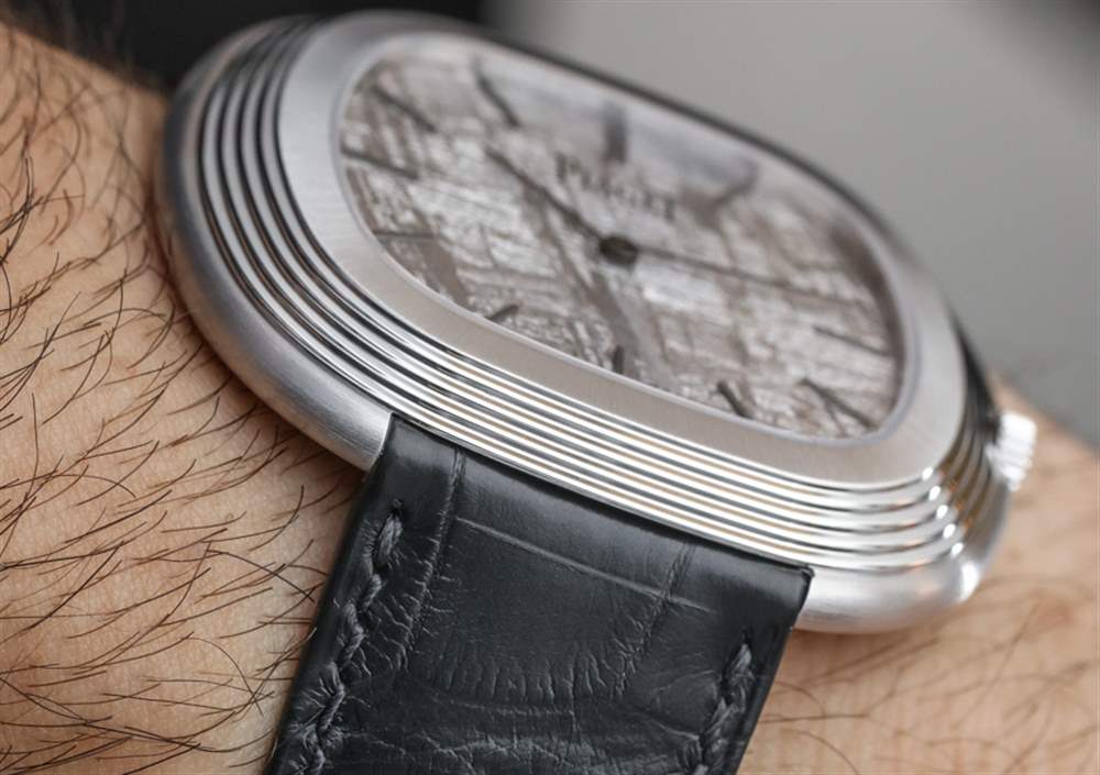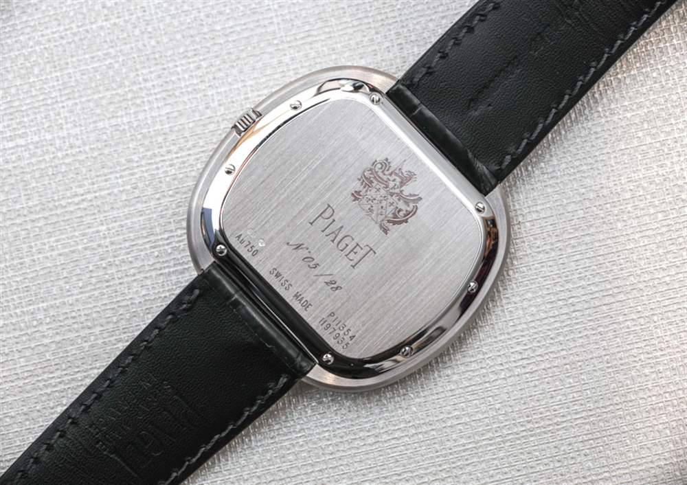 在我看來,天然淺灰色隕石表盤很漂亮。Piaget 標志印在藍寶石水晶的背面,18k 白金指針(啞光黑色)提供時間,甚至不提供秒數。這件作品在精神上確實是一款正裝手表,盡管您每次看到它時不一定都會以這種方式出現。但是,您可以從邏輯上確定,如果它不是運動手表或其他類似的東西,那么它只能是一件事……。正裝手表。