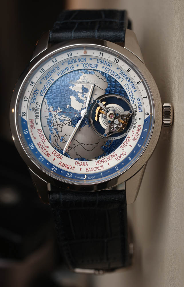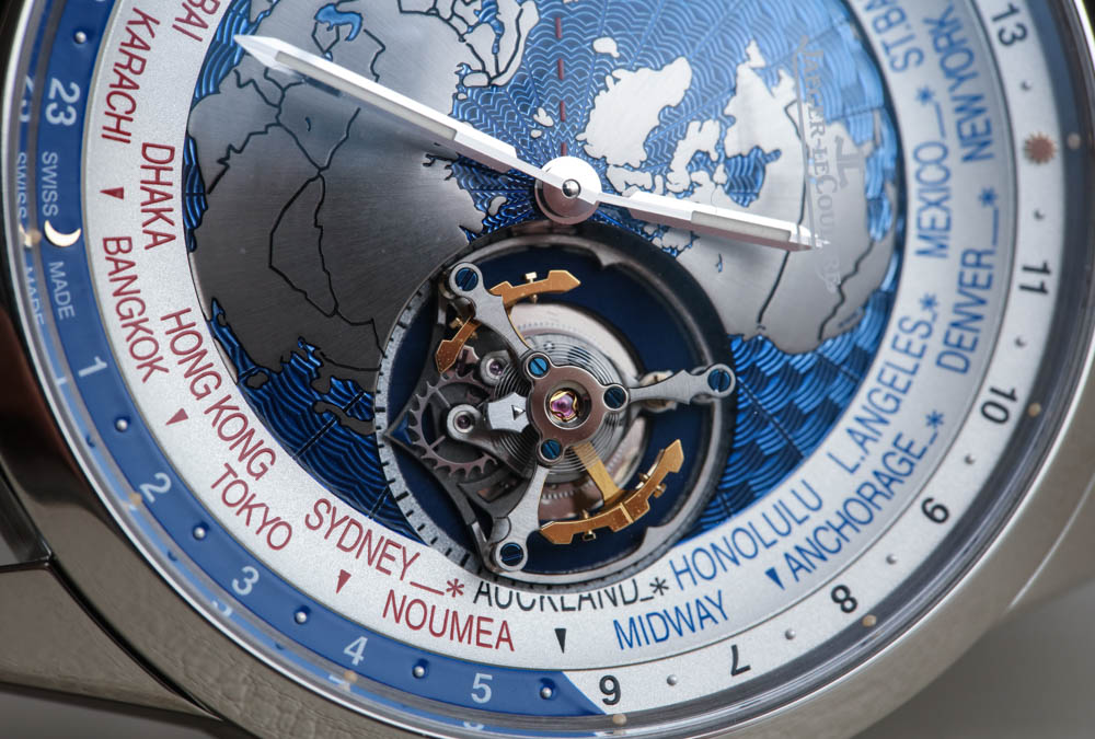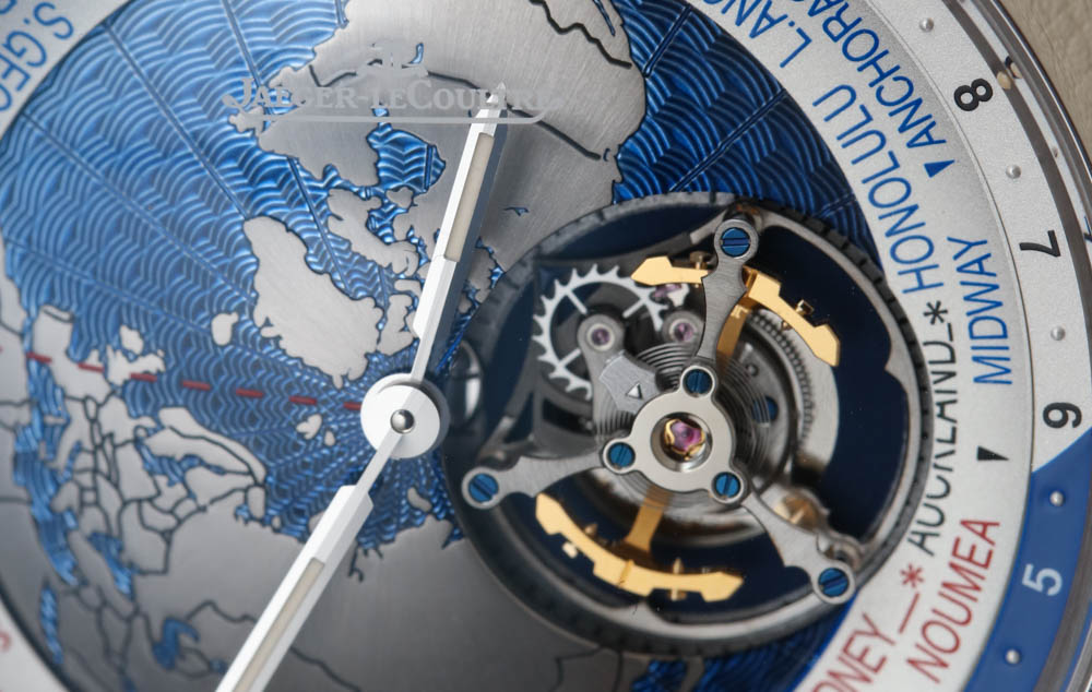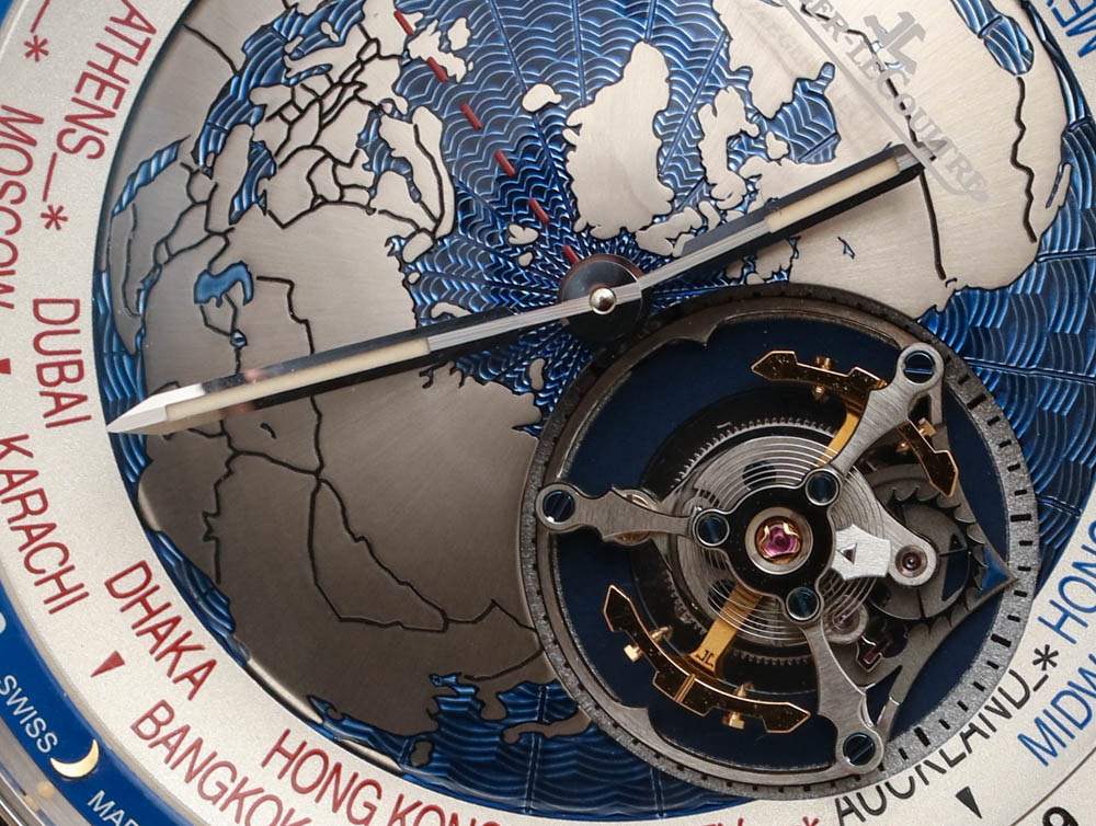 Jaeger-LeCoultre 聲稱在世界時間顯示盤中心的“地球表盤”上使用了扭索飾式機器雕刻來呈現海洋的外觀。它不是一個特別有用的表盤中心,但它在視覺上很有吸引力,這正是一些人認為的地球物理學,好吧,地球物理學。與此相同的其他 Geophysic 手表系列主題包括應用在表盤外圍的小發(fā)光點。