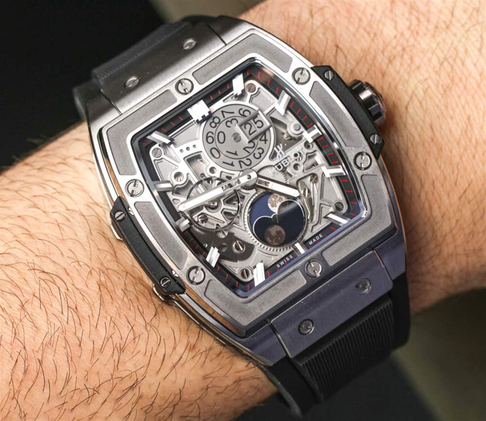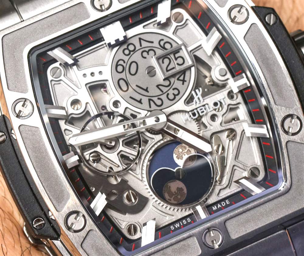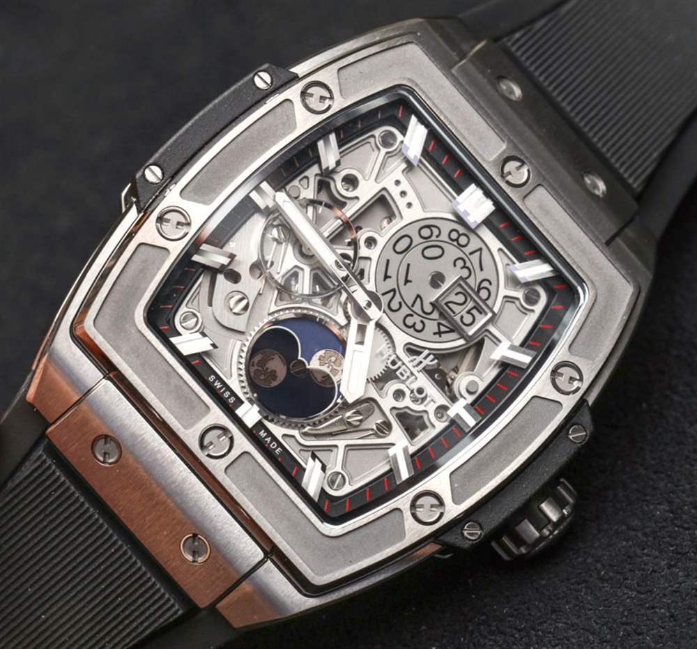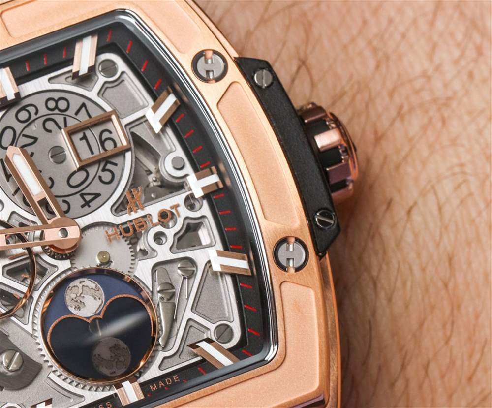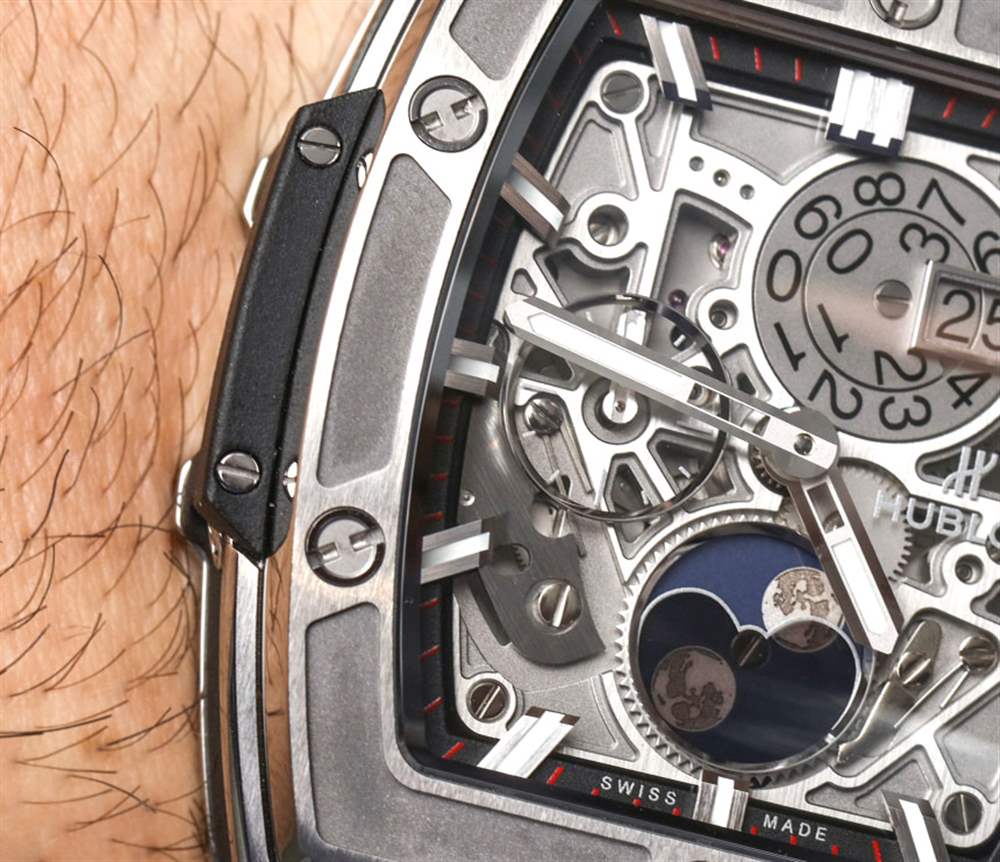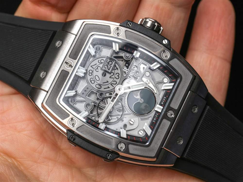 早在 2011 年,Hublot最初推出的手表最終成為“Hublot Spirit of Big Bang”。我記得在日內瓦舉行的活動,當時讓-克勞德·比弗宣布他“接受”了生產手表的請求,其內容類似于“如果宇舶表生產一款受理查德·米勒啟發的手表會怎樣?”?這兩家高端手表制造商傾向于以非常不同的價格提供產品(盡管兩者都非常高端),并相互尊重。由此產生的作品是“宇舶杰作”,我可以在這里親身體驗。它也是我們今天在這里看到的 Hublot Spirit Of Big Bang Moonphase 手表的直接前身。