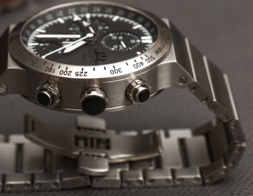 Valjoux 7751 自動(dòng)機(jī)芯本質(zhì)上是 7750,但增加了一些額外的復(fù)雜性。基礎(chǔ)機(jī)芯帶有 12 小時(shí)計(jì)時(shí)碼表,7751 型號(hào)增加了一個(gè)完整的日歷,帶有星期和月份窗口以及日期指針、帶 AM/PM 指示器的同步 24 小時(shí)指針和一個(gè)月相指示器。雖然完整的日歷不像年歷或萬(wàn)年歷那么花哨,但使用表冠和 10 點(diǎn)鐘位置的旋入式按鈕,可以在需要時(shí)相對(duì)輕松地調(diào)整日歷數(shù)據(jù)。