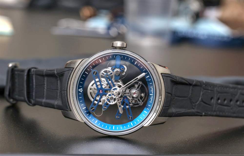 機芯以 3 赫茲(21,600 次/小時)的頻率運行,動力儲存長達 90 小時。機芯厚度也只有 5.78 毫米,從各個角度來看確實非常吸引人。也許更重要的是易讀性,對于這樣的鏤空表盤來說,這實際上是相當不錯的,并且傾斜的章環上的刻度用于進一步的可讀性。