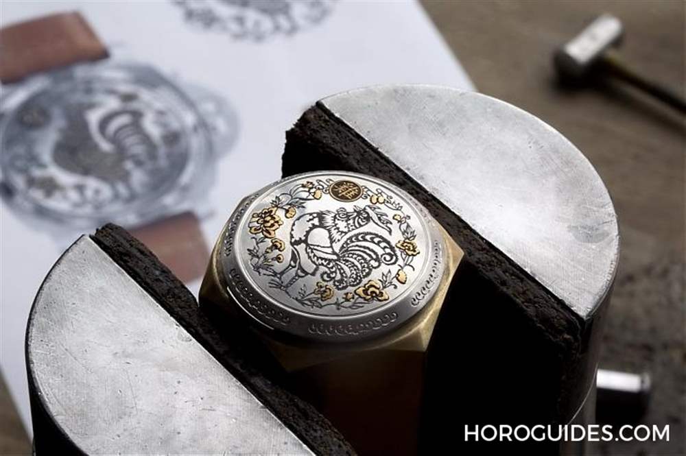 看著沛納海的生肖表你可能會發現他們家的生肖表跟其他品牌的很不一樣,不走寫實繪畫風,因為沛納海從第一款牛年限量表開始就是采用中國剪紙風格的生肖圖騰,而工藝師便是先將設計圖移印到不銹鋼表蓋上,再運用刀具雕刻,由于沛納海生肖系列皆是采用不銹鋼材質,材質堅硬,因此雕刻師父必須來回雕飾,而且雕刻完后,還要以金絲填入跟打磨修潤,制作一個沛納海生肖表表蓋可說是費心費神又費工!