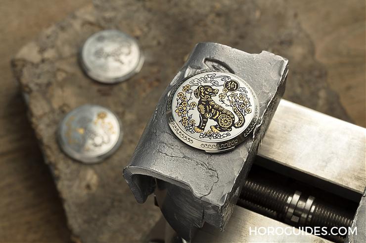 沛納海的表款向來就是給人相當俐落、簡約、軍事風,而在生肖系列卻可以看到沛納海精雕細琢的義式工藝。在沛納海生肖表所采用的是義大利古老雕刻技法,首先功夫老練的雕刻師使用名為“sparsello”的特別工具在表蓋上雕刻出農歷生肖圖形凹槽,再逐步將金絲嵌入拷捶、點綴精工細雕的生肖圖紋。
