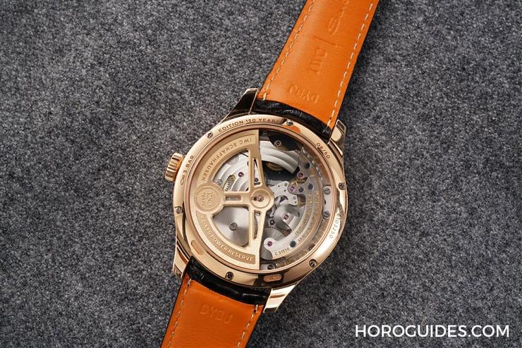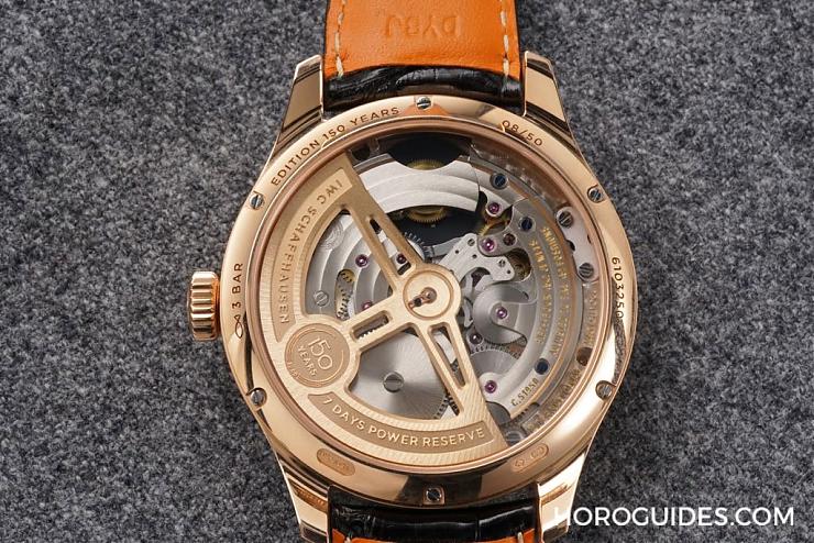這款葡萄牙系列萬年歷陀飛輪腕表150周年特別版(型號IW504501),是IWC第一次推出同時具備陀飛輪與萬年歷功能的腕表,以1985年由Kurt Klaus所研發的Da Vinci達文西系列萬年歷腕表(IW3750)為啟發靈感,在12點鐘位置加上82枚零件組成、僅0.635克重的陀飛輪裝置,并將月相顯示并入6點鐘的月份盤內。