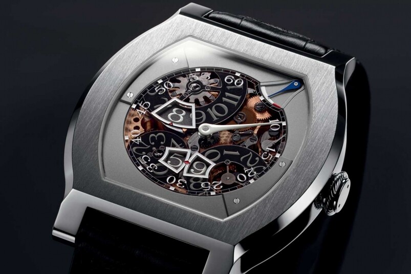 事實上,跳字顯時并非熱門功能,處理不好的話,設計外表也近似電子表,所以只有少數傳統品牌會染指digital time display。反而一些獨立制表品牌的包袱較輕,一旦想到天馬行空的概念,也有勇氣實現出來,夠膽將腕表改頭換面。