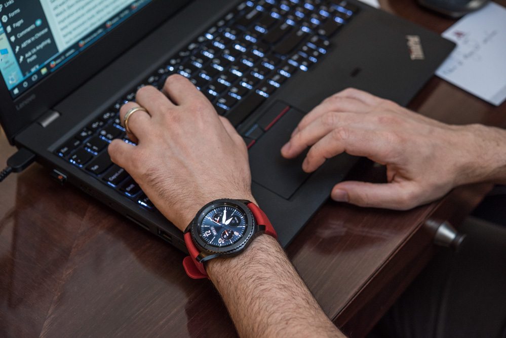 三星 Gear S3 確實很大,但它并不大,?佩戴比卡西歐 WSD-F10 智能手表小,可能與TAG Heuer Carrera Connected 差不多。有了合適的表帶,三星 Gear S3 真的很舒服,它的設計可以與任何標準的 22 毫米寬的表帶配合使用(盡管三星將有自己的官方表帶供人們選擇)。
