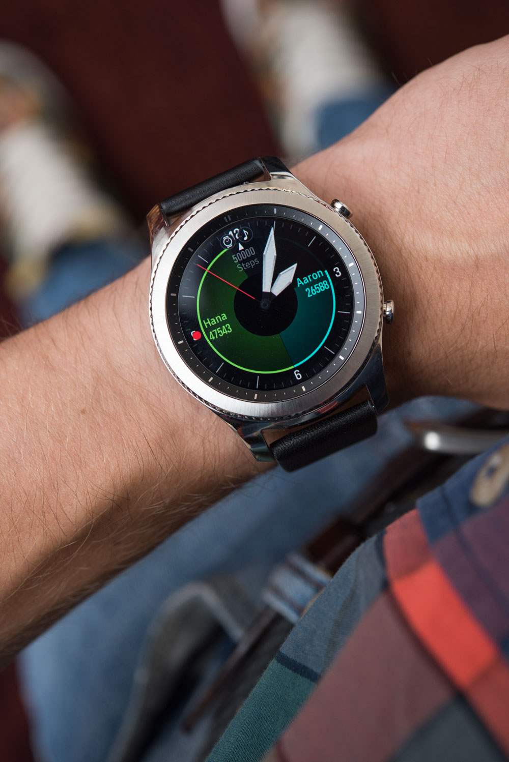 在手腕上,三星 Gear S3 很大(在我的 6.75 英寸小手腕上看起來更大——聯合編輯大衛),但在很多方面,因為它需要。Arpa 熱衷于確保三星 Gear S3 的表殼相稱——并確保表殼不會顯得太厚,他設計了表耳、顏色對比和飾面以幫助減少視覺質量。一些巧妙的設計技巧包括將凸耳放置在外殼的最末端,并將三星 Gear S3 外殼的下半部分涂成黑色,以便將注意力吸引到外殼較薄的上部。