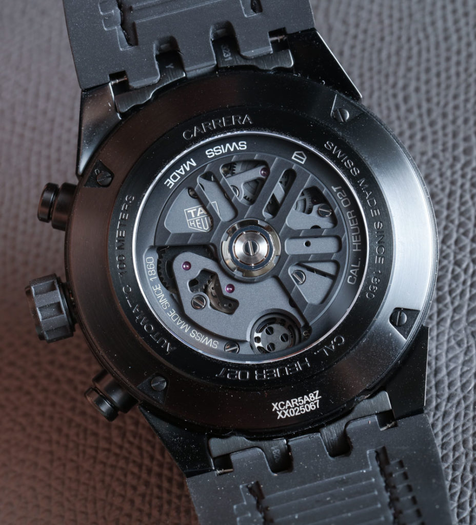 2012 年,他們推出了MikrotourbillonS,然后,就在最近的 2014 年,TAG Heuer 發布了Monaco V4 Tourbillon(在這里動手)。“皮帶驅動”并在頂部安裝橋板,Monaco V4 的陀飛輪以不同的方式設計,但它的價格也約為 170,000 美元。話雖如此,我應該指出,Heuer-02T 陀飛輪的設計靈感來自摩納哥 V4 陀飛輪的構造。TAG Heuer Carrera Heuer-02T Tourbillon 的價格也只是 Monaco Tourbillon 的一小部分,起價約為 16,000 美元。對于長期關注高端手表行業的人來說,這個數字似乎低得不可思議。
