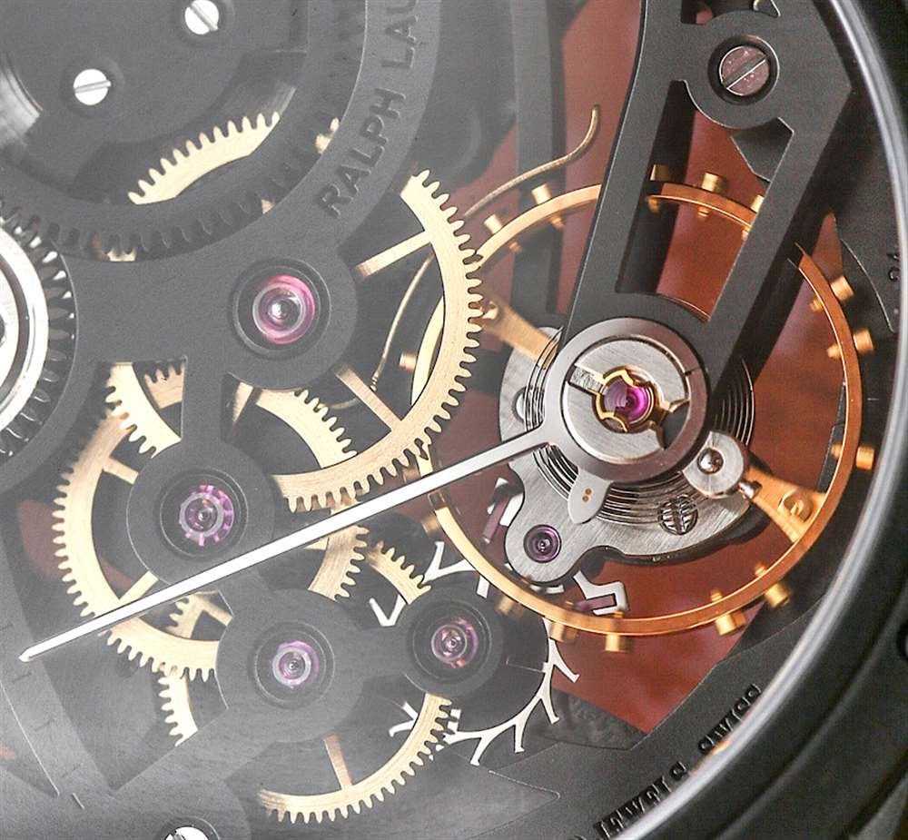 然而,同一機芯在 ValFleurier 中為 Ralph Lauren RL Automotive Skeleton 手表進行了相當獨特的改造,并更名為機芯 RL1967。是否有必要對運動重新命名?該機芯經過獨特的鏤空處理,因為大部分機芯部件都模仿了表殼的啞光黑色飾面。由于機芯的黃銅和鋼部件以及紅色合成紅寶石,您有一些可愛的顏色對比。雖然我喜歡 RL1967 的外觀并同意它非常上鏡,但我不會將其描述為具有“奢華感”的鏤空機芯類型。為什么?好吧,它沒有一絲手工打磨或裝飾的外觀,沒有使用任何貴金屬或其他材料,也不是特別復雜。毫無疑問,制作起來很復雜,