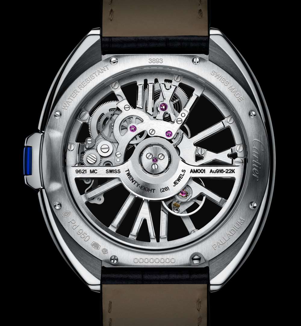 自制的 Cartier 9621 MC 兼具吸引力和實用性,以 4Hz (28,800bph) 的頻率運行,動力儲存約 48 小時。自動擺陀由 165 個零件制成,高度鏤空,由 22k 白金制成。考慮到黃金的重量,我確信它提供了足夠的質量以實現適當的自動上弦效率。