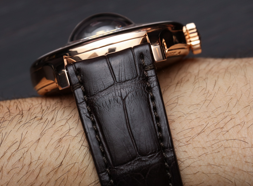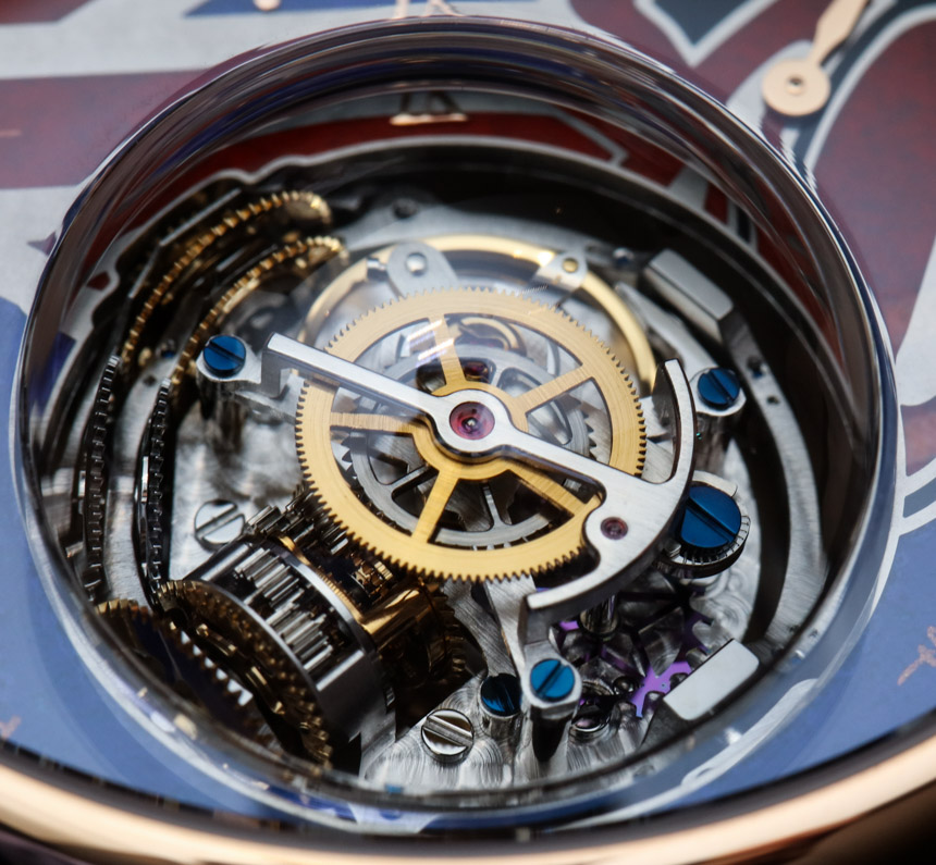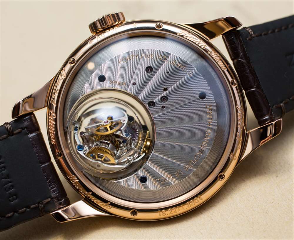 18k 玫瑰金表殼寬 45 毫米,表殼厚 14.35 毫米,但在安裝“零重力”調(diào)節(jié)系統(tǒng)的藍寶石水晶“氣泡”處厚度達到 21.4 毫米。這個概念很有趣,玩起來很有趣。你擁有的是一個高度復雜的球形調(diào)節(jié)系統(tǒng),由設(shè)計在萬向架上的擺輪和擒縱機構(gòu)組成。從底部開始加重,其理念是無論您將手表朝哪個方向移動,調(diào)節(jié)機構(gòu)都保持直立。從理論上講,這是為了提高準確性。戴上手表,轉(zhuǎn)動手腕,玩起來也很有趣……廣告留言廣告信息結(jié)束