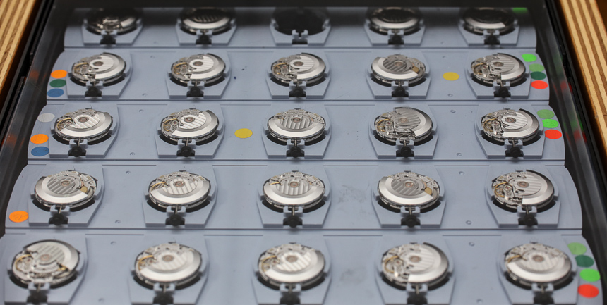 STP 聲稱它是第一家采用機器人自動化來協助人工生產手表機芯的公司。STP 受益于美國業主和瑞士運營商,他們結合了他們最好的才能,以確保效率、質量,當然還有生產力。STP 沒有完成“骯臟工作”的衛星中心,所有組裝都在設施內進行。盡管他們還沒有達到他們的生產目標(這意味著他們想要提高平均日產量),但該公司仍然能夠每天生產 600 到 1,300 個手表機芯,具體取決于他們目前正在研究的具體機芯。