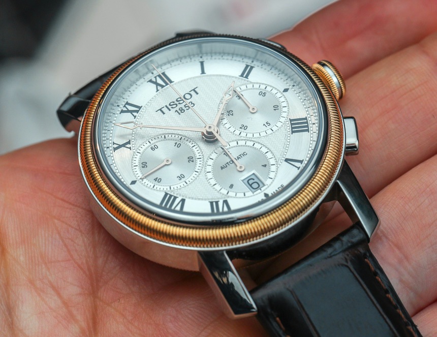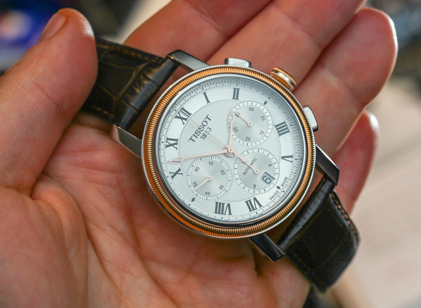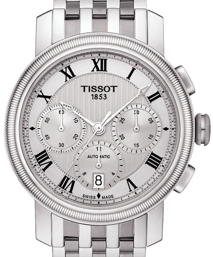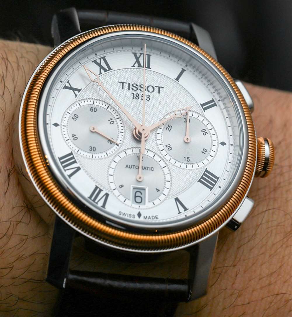Tissot T-Classic 系列現在包括去年于 2015 年首次亮相的 Bridgeport Automatic Chronograph 手表。Tissot 目前提供四種不同版本的 Tissot Bridgeport Automatic Chronograph,它們將舊世界時計的外觀與現代尺寸和材料相結合。我經常將此類手表稱為“寶璣寶貝”,因為它們試圖模仿與高端奢侈手表制造商(恰好也屬于斯沃琪集團)相關的一些外觀。我說的是機器扭索紋雕刻風格的表盤(在這種情況下可能是通過沖壓生產的)、表圈和表冠上的壓鑄邊緣以及指針和時標的設計等元素。廣告留言廣告信息結束