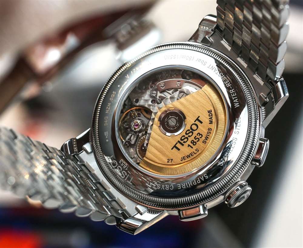 Tissot Bridgeport Automatic Chronograph 表殼防水深度達 50 米,表盤和背面均采用藍寶石水晶玻璃,可以看到機芯。天梭實際上使用了令人印象深刻的瑞士 ETA Valjoux 7753 自動機芯,帶有金色轉子和大部分機芯表面的珍珠拋光。當您想要以這些價格購買搭載 7750 系列機芯的手表時物有所值時,這感覺就像是合適的裝飾水平。