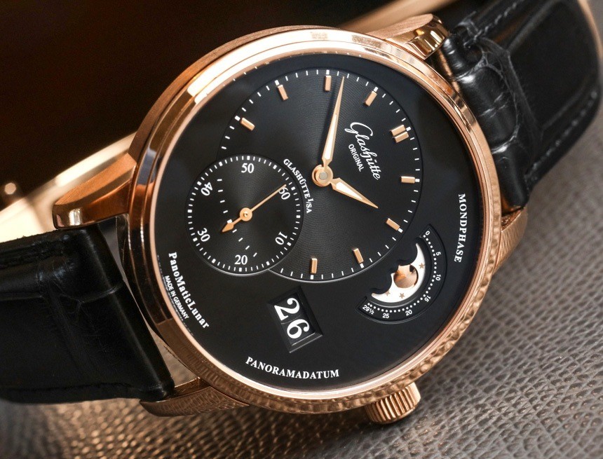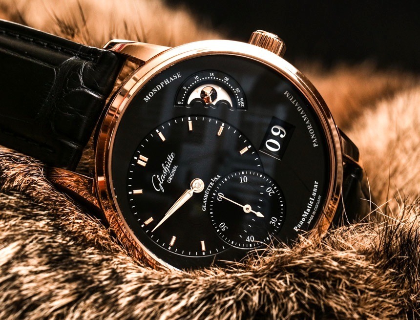 在表盤上,功能明顯不對稱布局,但也符合邏輯且視覺平衡。表盤制作精美,清晰易讀,時針和分針甚至發光。我并不傾向于抱怨撥號文本,但考慮到這里字體的多樣性和一些文本的實用性較低,我覺得“Mondphase”和“Panoramadatum”只是不必要的。我不介意“PanoMaticLunar”型號名稱或“德國制造”,我覺得將它們放在表盤上會更好。